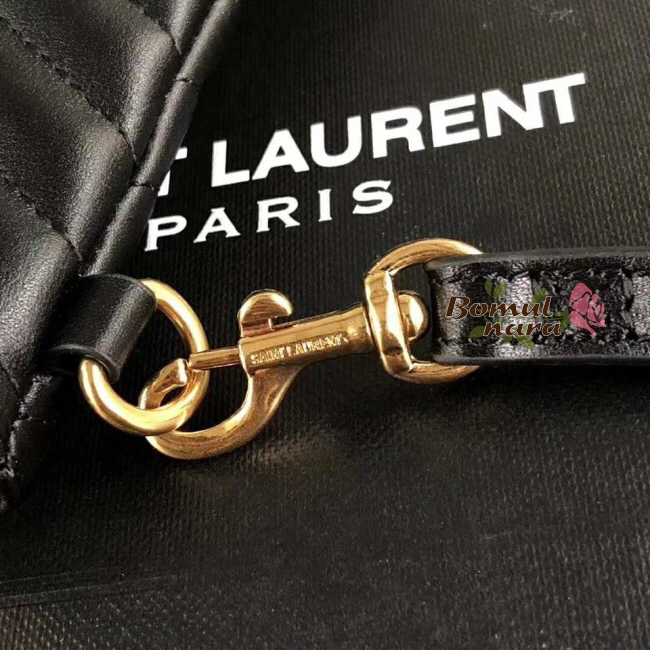 V라인의 퀼팅 디테일과 인터로킹 YSL 골드 메탈 로고