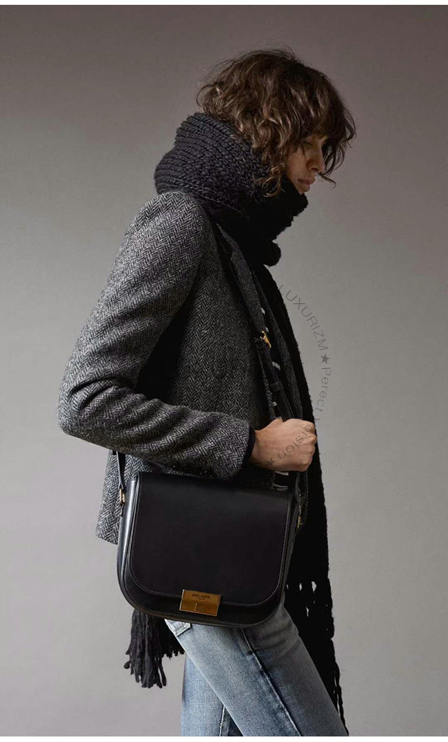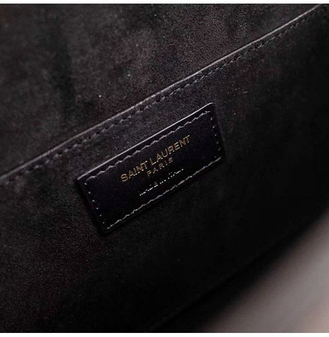 브론즈 메탈 하드웨어 스웨이드 소재 안감 생 로랑 파리 시그니처가 새겨진 메탈