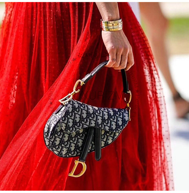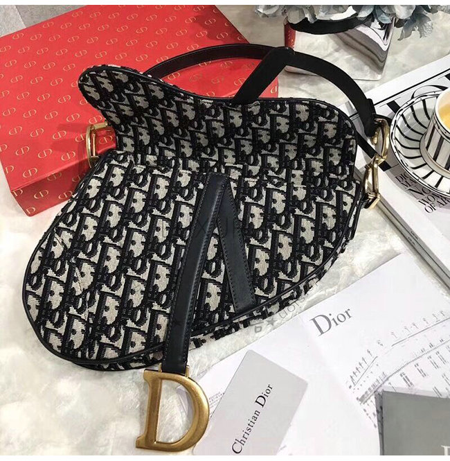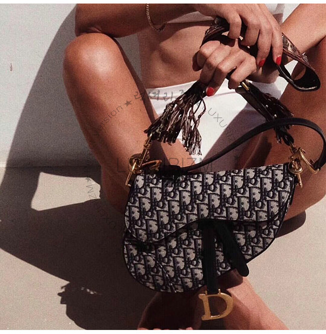 Dior Oblique 패브릭 Saddle 백, 암송아지 가죽 디테일.빈티지 골드 컬러 메탈 주얼리.