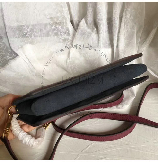 플랫 그레인 가죽과 스웨이드, 아코디언 구조의 크로스 3 봉지, 지퍼 고정 및 이동식 어깨 끈.