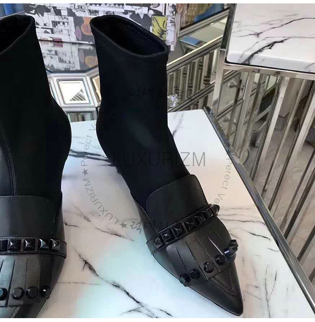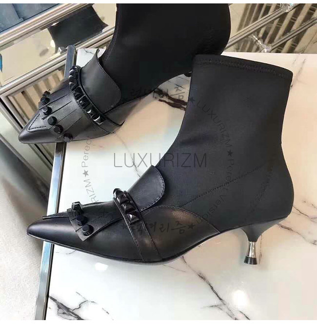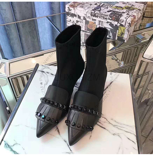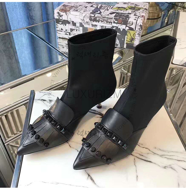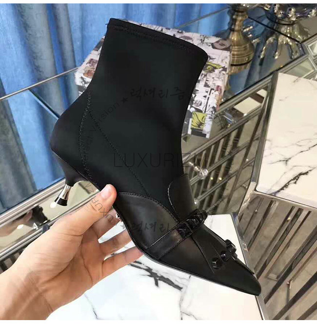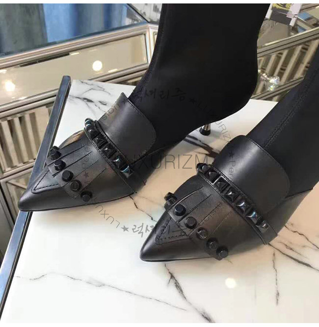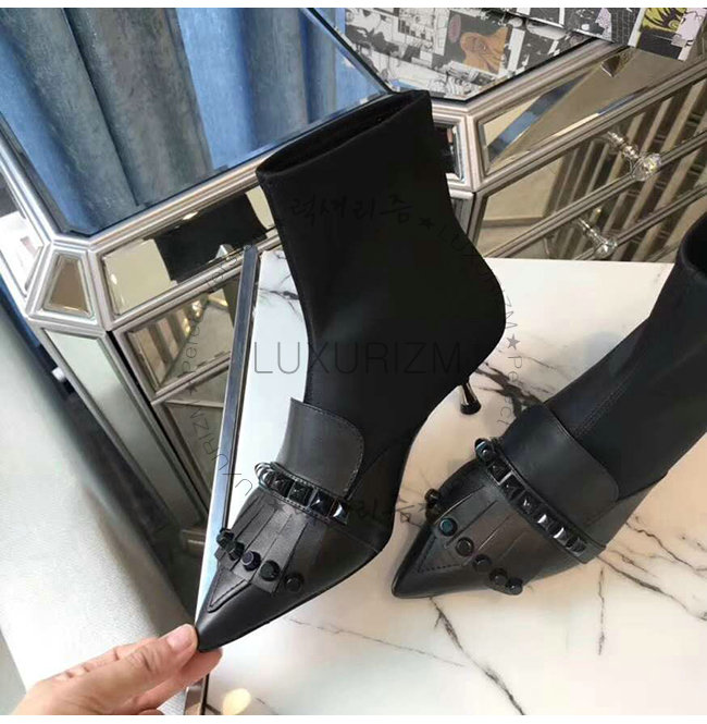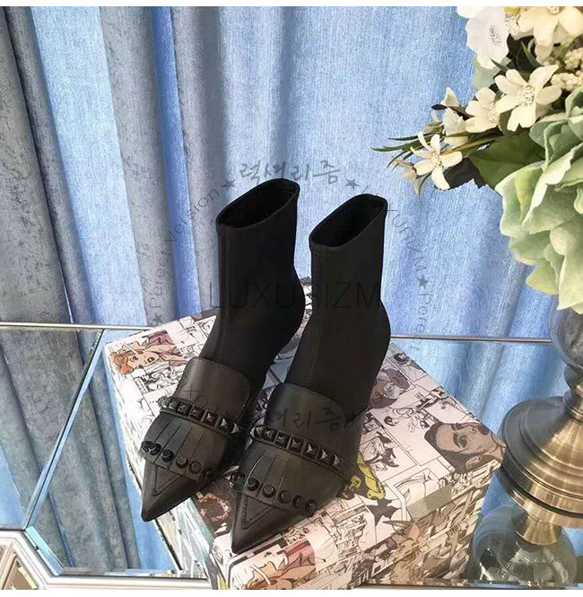 갑피: 송아지 가죽, 네오프렌 토널 스터드 55mm 메탈 힐 메탈 레터링 로고가 있는 가죽 밑창.