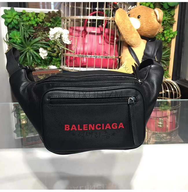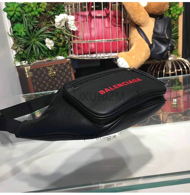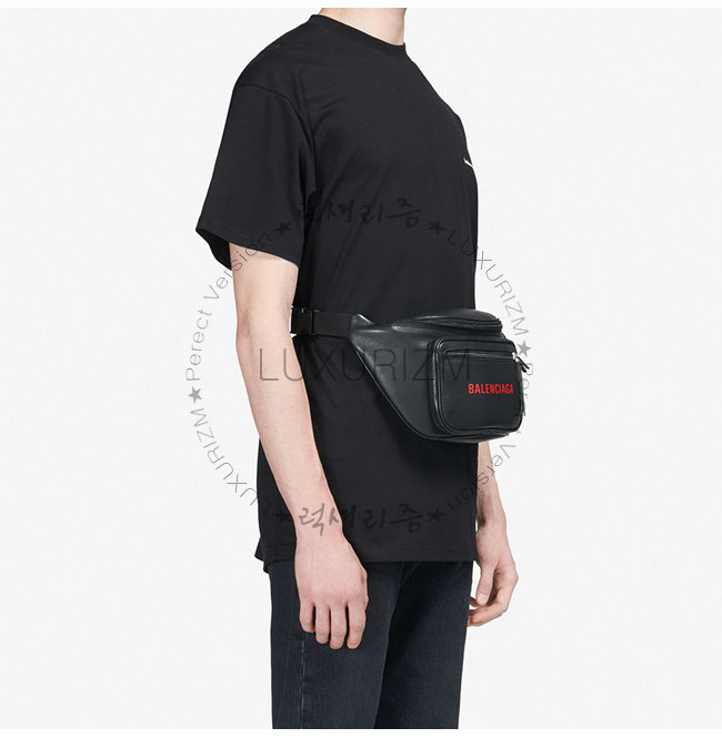 [스페셜오더]BALENCIAGA-531933 발렌시아가 블랙 송아지 가죽 레드 로고 에브리데이 벨트 백