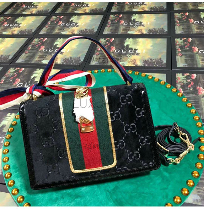 [스페셜오더]GUCCI-524405 8711 구찌 블랙 브라운 GG 벨벳 스몰 숄더백