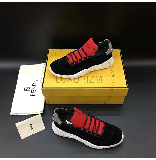 FENDI-7E1174 펜디 블랙 스포티 스웨이드 가죽 로우탑 스니커즈