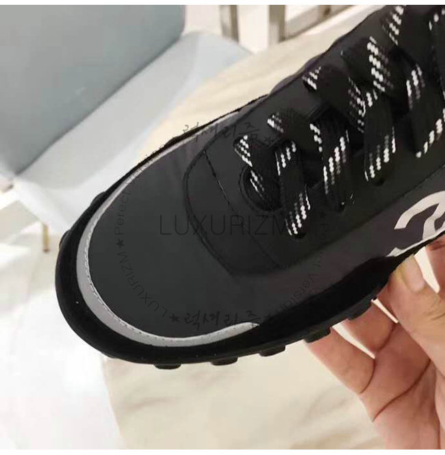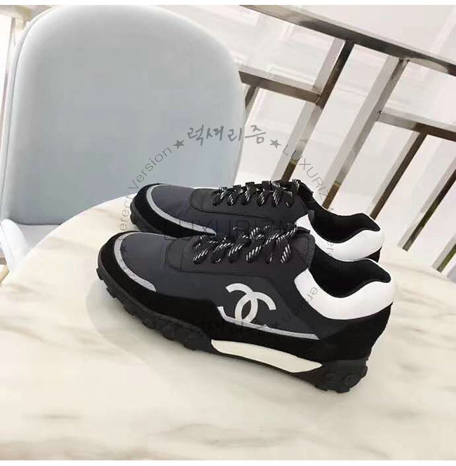 CHANEL-G34086 샤넬 그레이 나일론 카프스킨 스니커즈