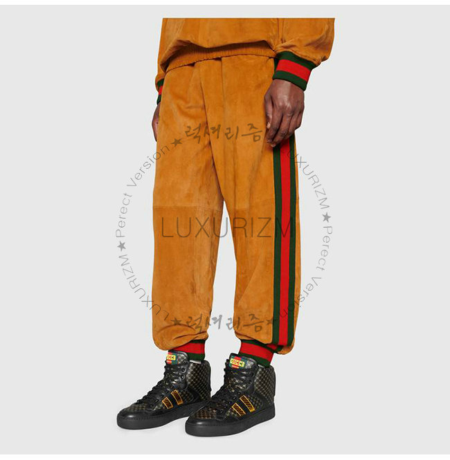 GG 무늬가있는 가죽 에어즈와 가죽 사이드 스트라이프 안쪽에 패딩 처리