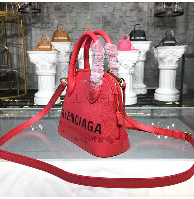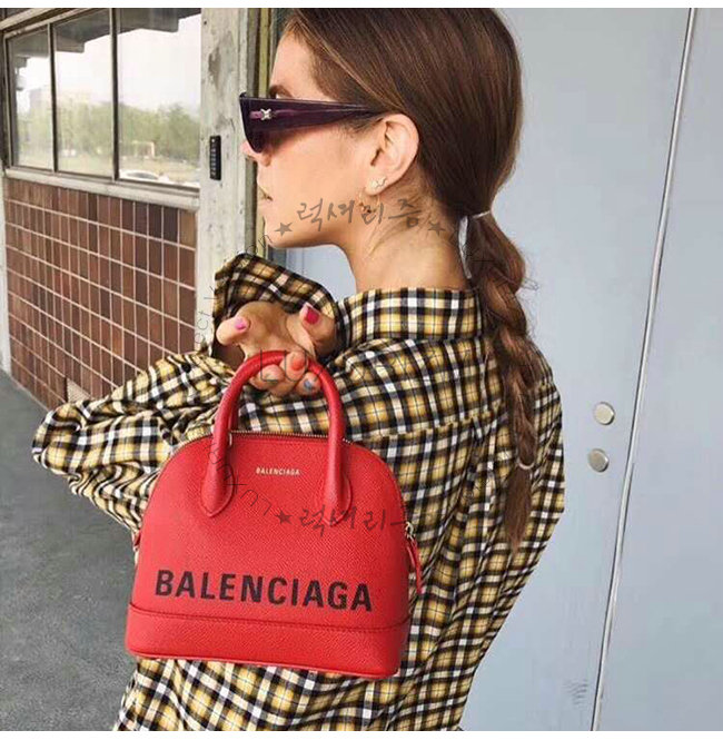 [스페셜오더]BALENCIAGA-525050 발렌시아가 레드 그레인드 송아지 가죽 빌 탑 핸들백 XXS