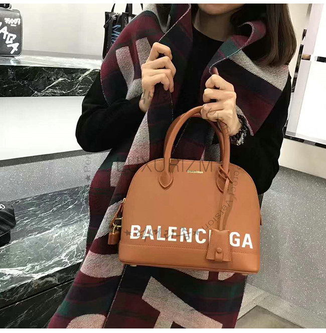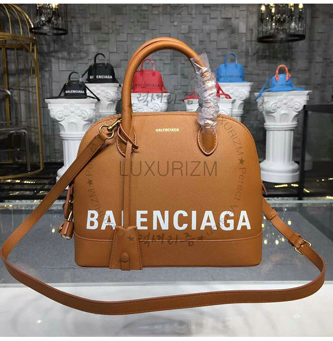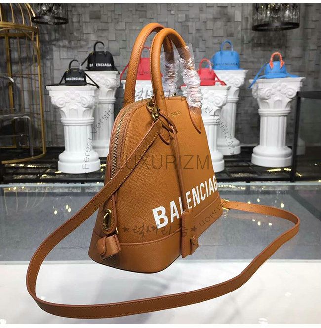 [스페셜오더]BALENCIAGA-518873 발렌시아가 브라운 그레인드 송아지 가죽 빌 탑 핸들백 S