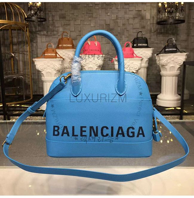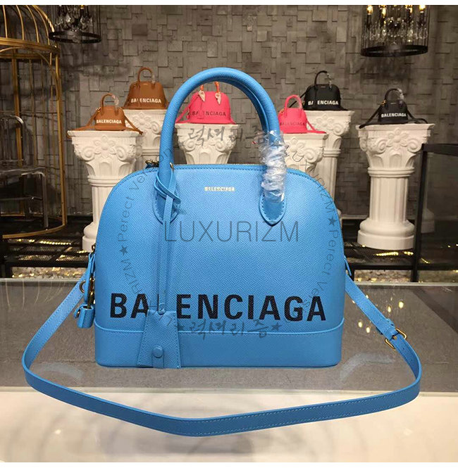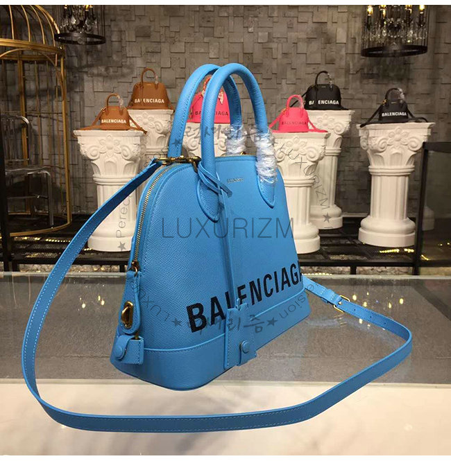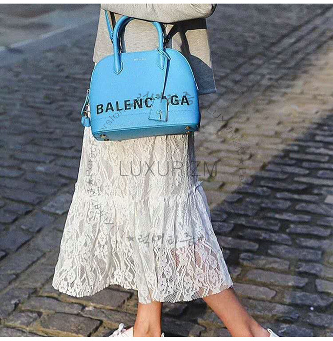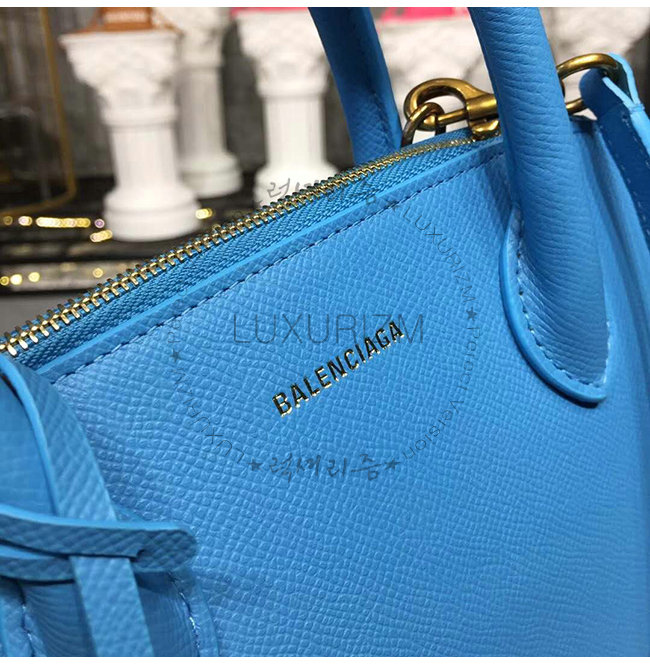 [스페셜오더]BALENCIAGA-518873 발렌시아가 블루 그레인드 송아지 가죽 빌 탑 핸들백 S