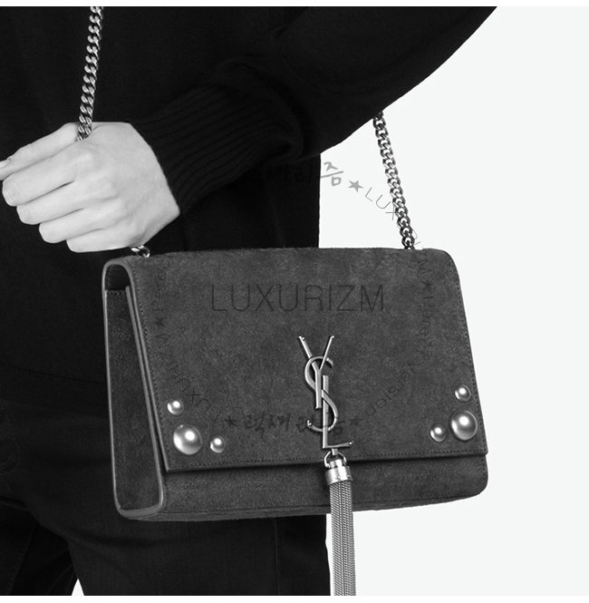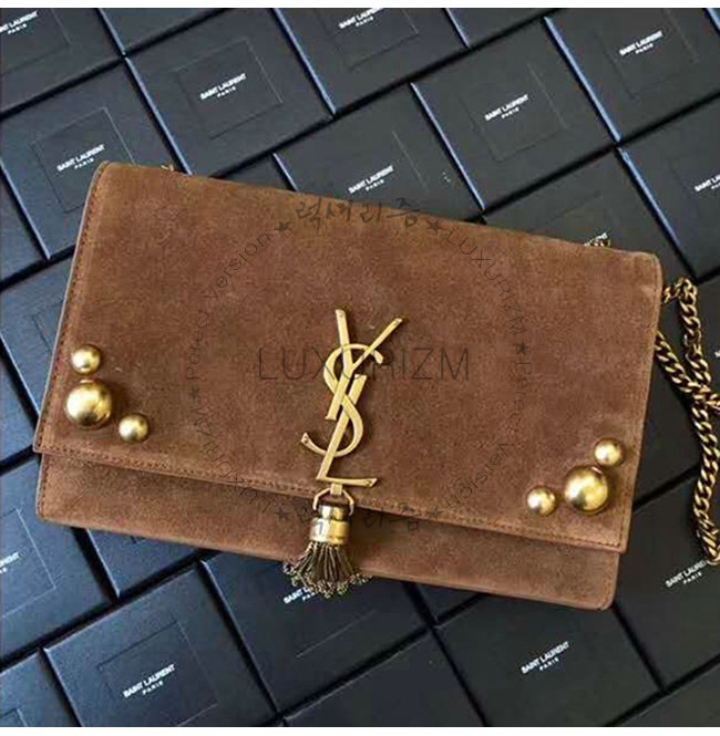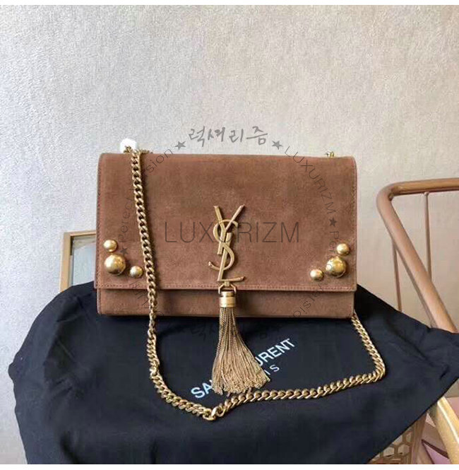 [스페셜오더]SAINT LAURENT-356095 생 로랑 브라운 스웨이드 염소 가죽 스터드 장식 미디엄 케이트 체인 태슬백