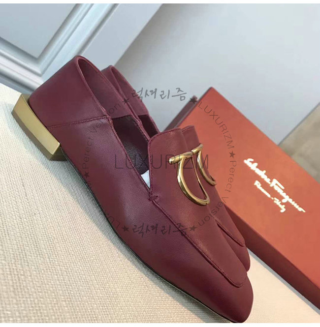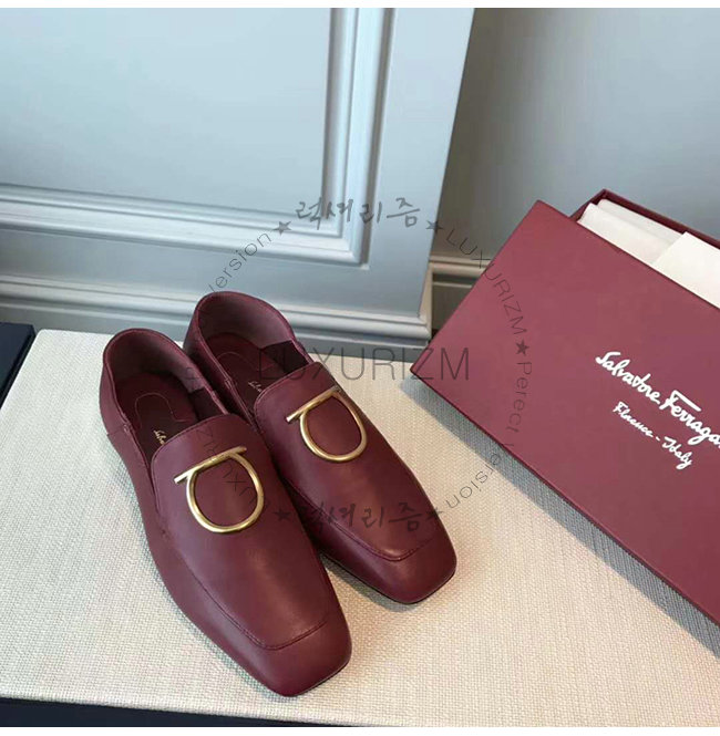 FERRAGAMO-01N493 페라가모 버건디 송아지 가죽 로퍼