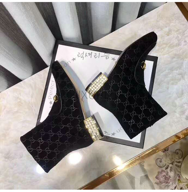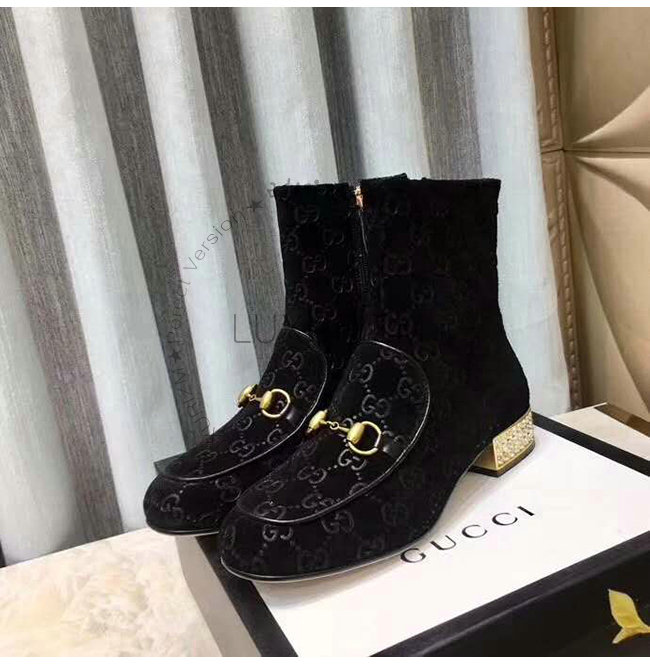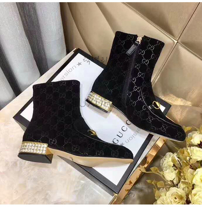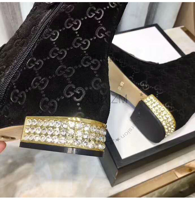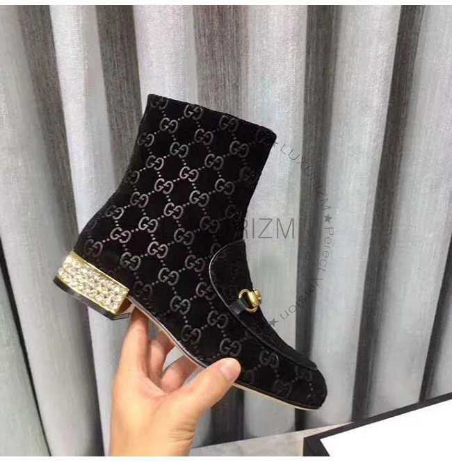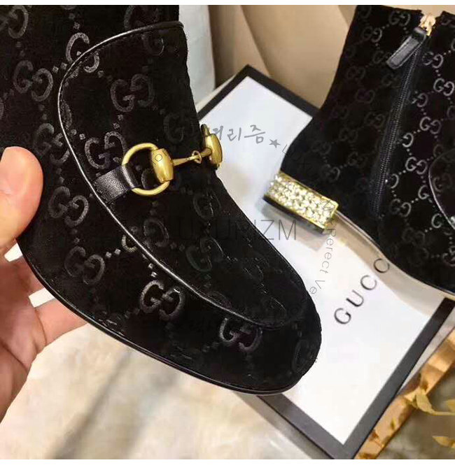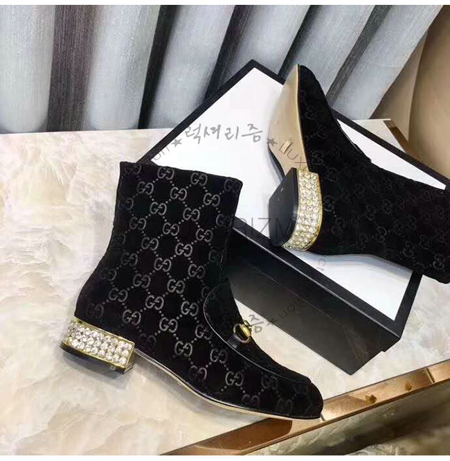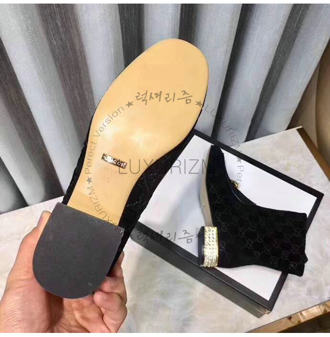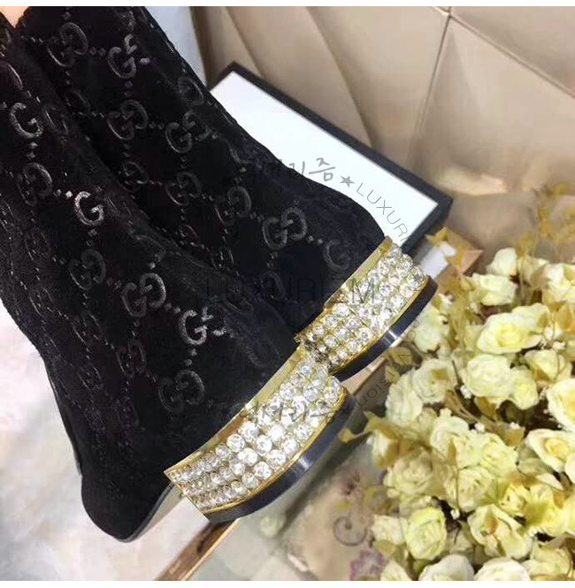 GUCCI-525242 1000 구찌 블랙 GG 벨벳 크리스탈 장식 부츠