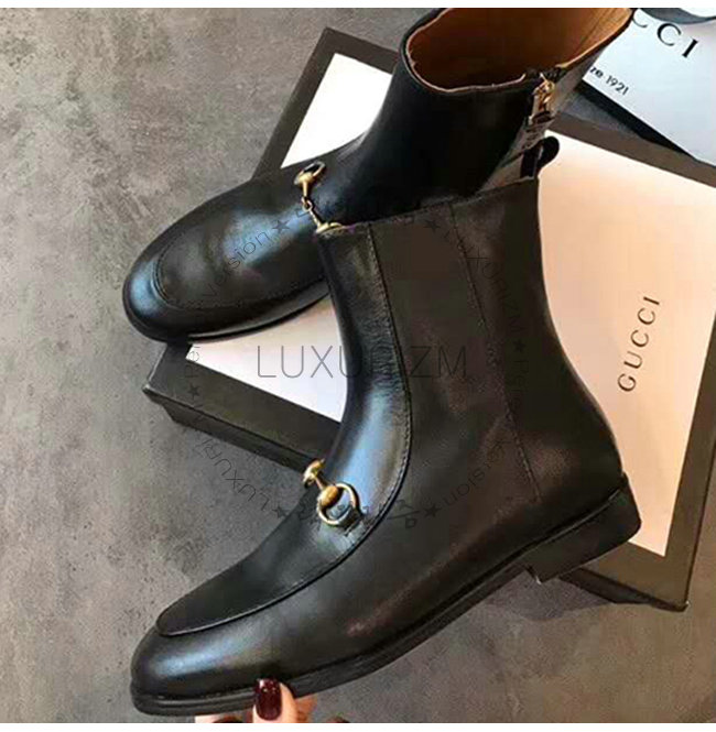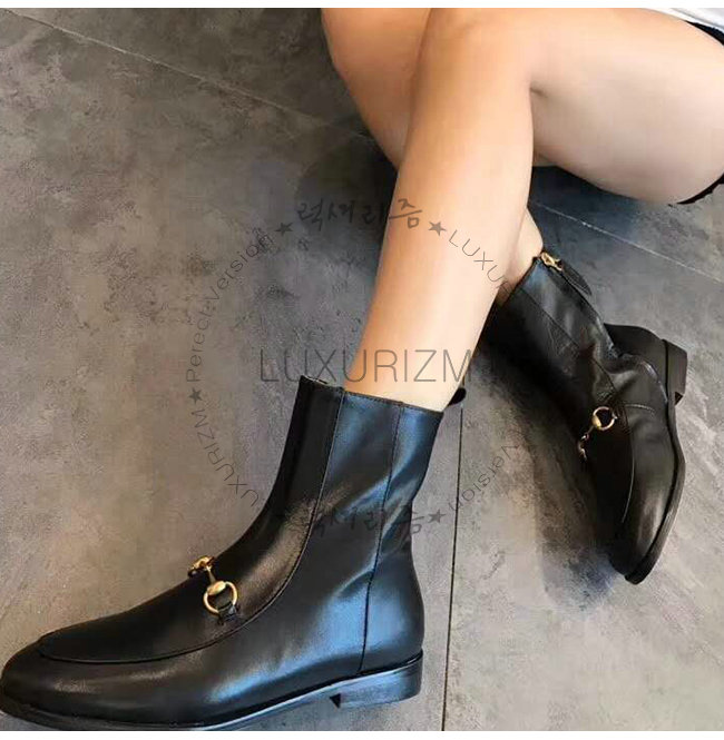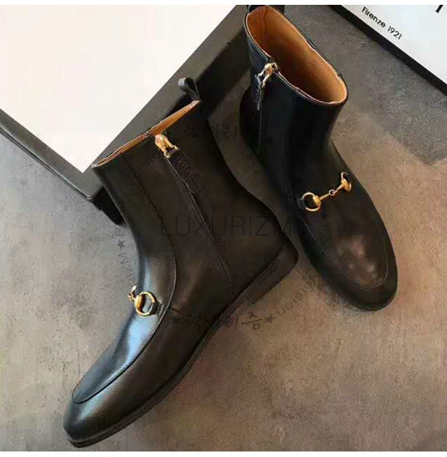 구찌 조던 앵클 부츠. 클래식한 로퍼 디자인. 홀스빗 디테일이 장식된 슬림한 실루엣.