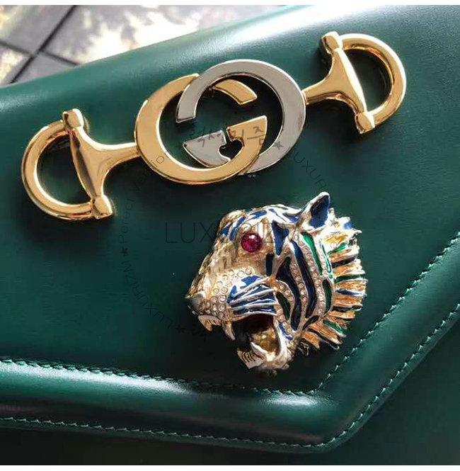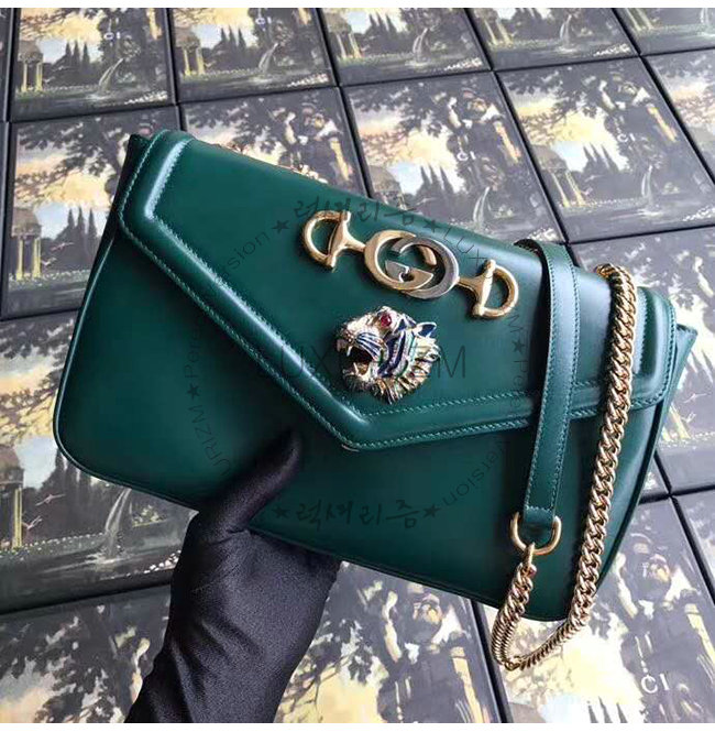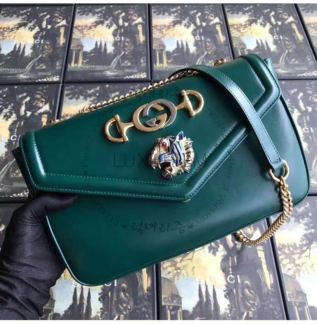 [스페셜오더]GUCCI-537241 3184 구찌 그린 가죽 타이거 헤드 디테일 미디엄 숄더백