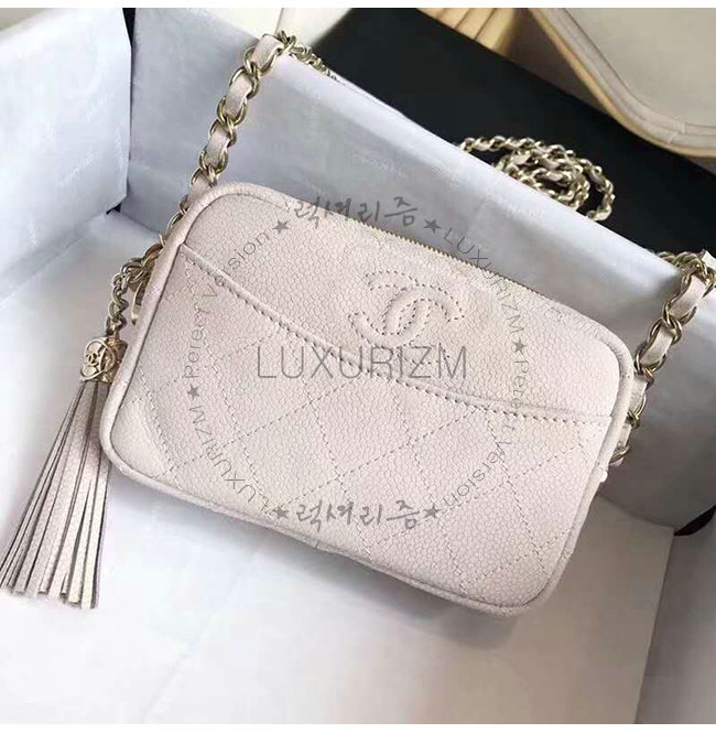 [스페셜오더]CHANEL-A57717 샤넬 화이트 그레인드 카프스킨 골드메탈 스몰 카메라 케이스