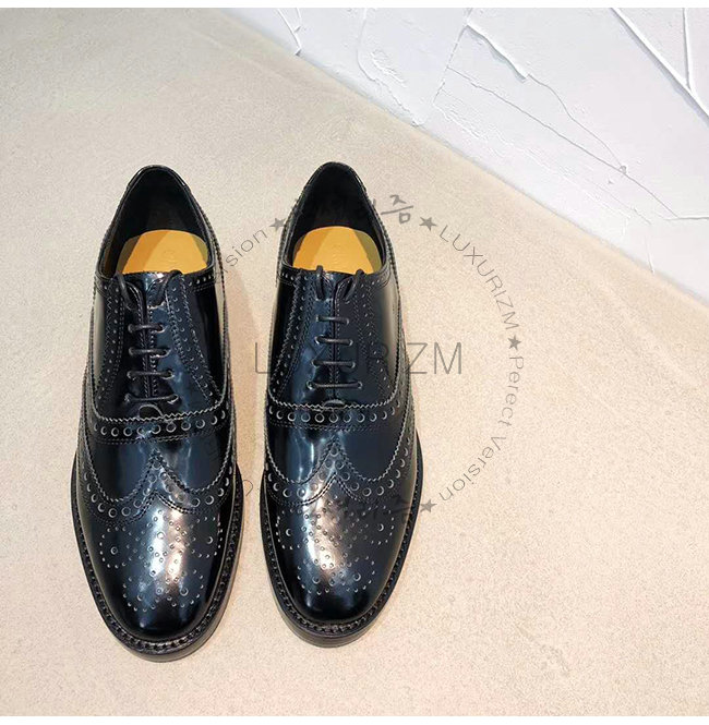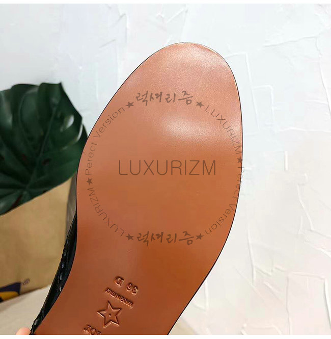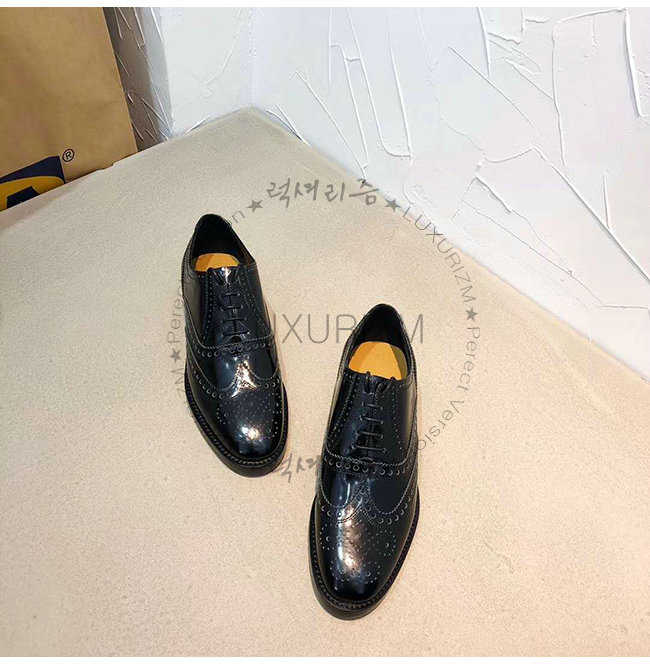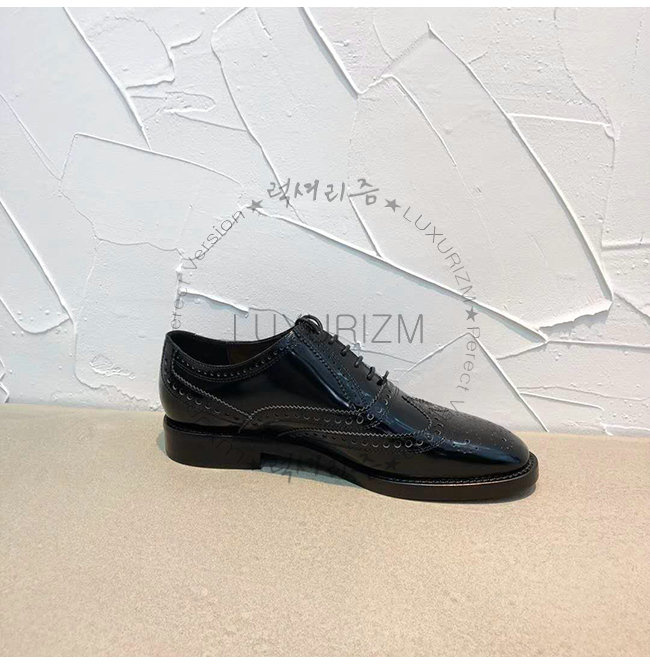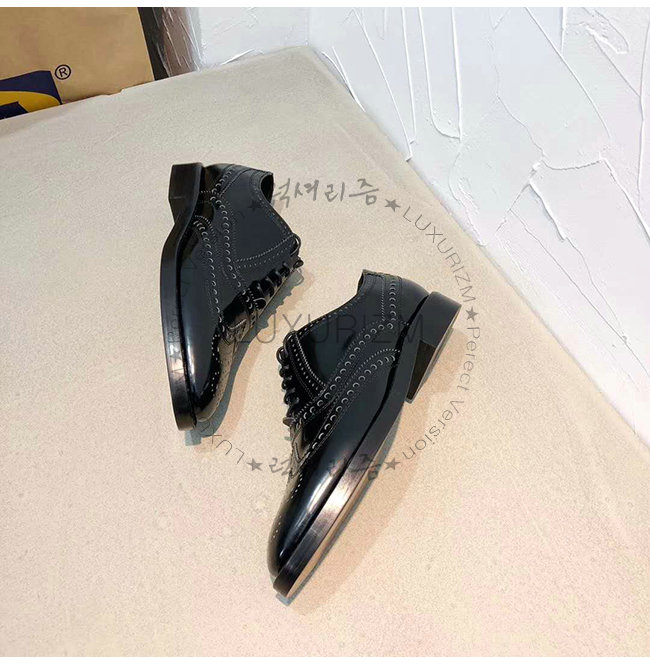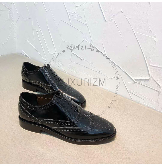 블랙 무광 송아지 가죽 대조적인 유희가 돋보이는 펀칭 디테일 레더 슈레이스
