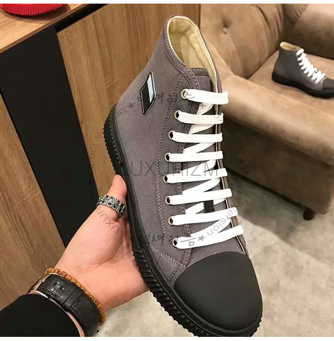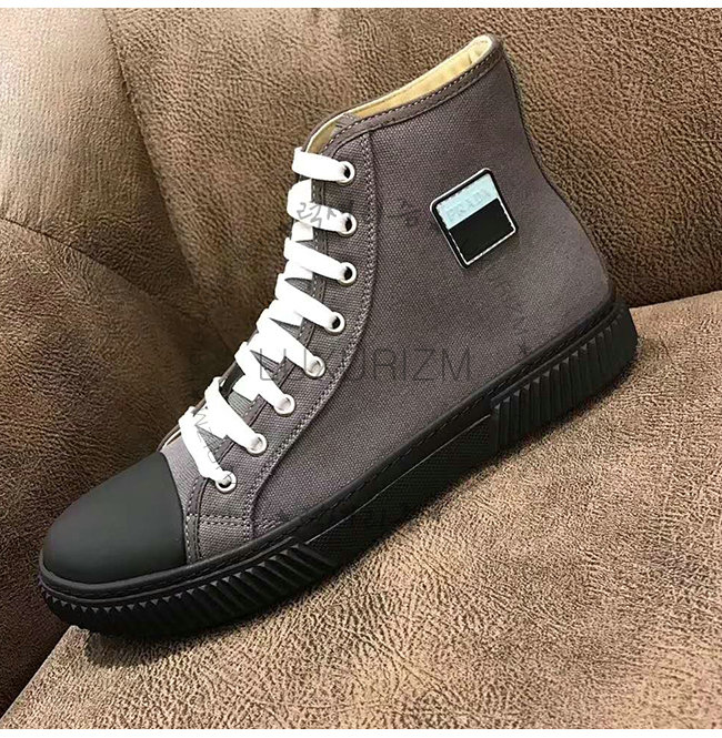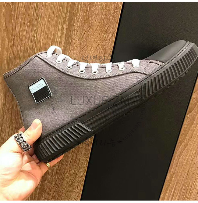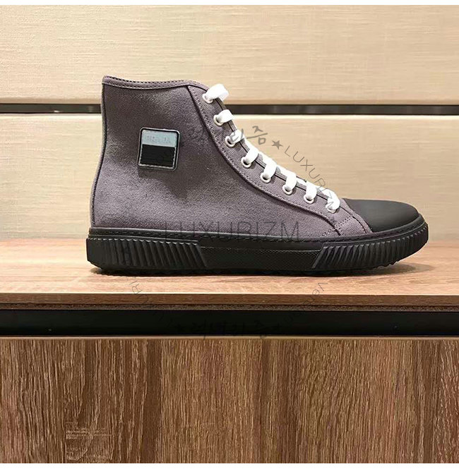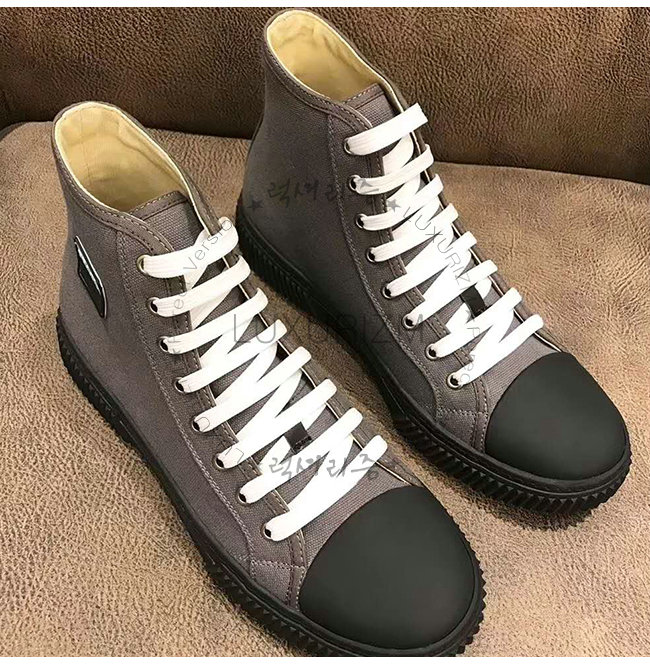 PRADA-4T3218 프라다 그레이 코튼 하이탑 스니커즈
