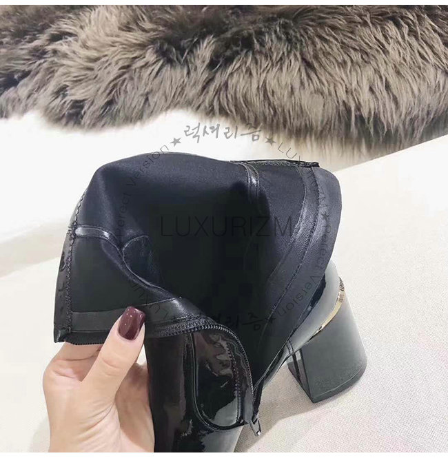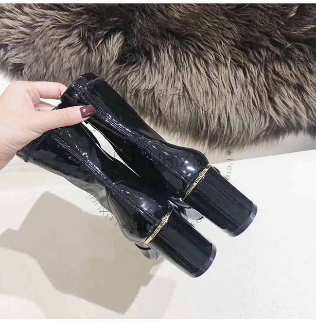 LOUIS VUITTON-1A3R2X 루이비통 블랙 페이턴트 송아지 가죽 언커버 앵클 부츠