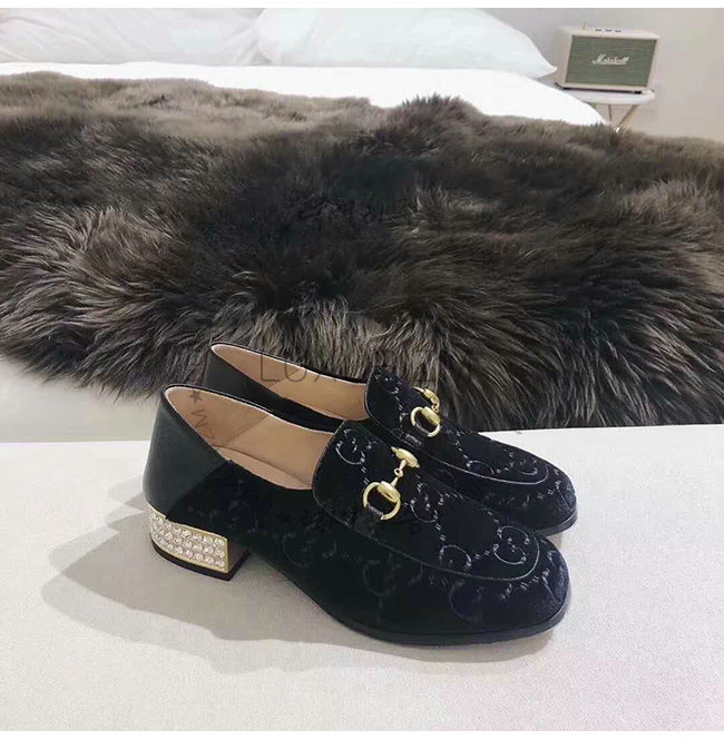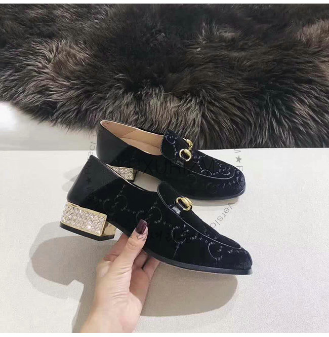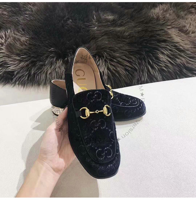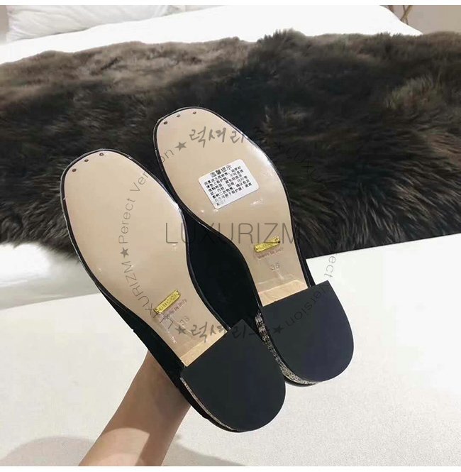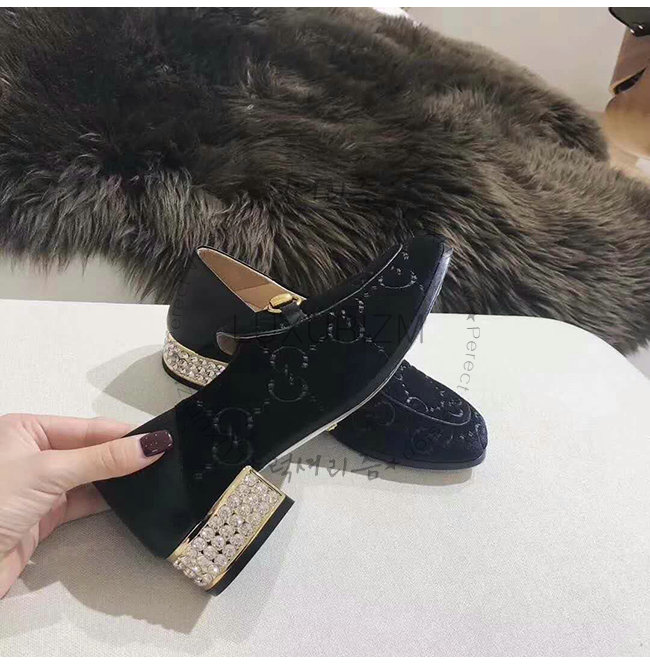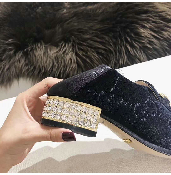 GUCCI-522698 1000 구찌 블랙 GG 벨벳 크리스탈 장식 Horsebit 로퍼