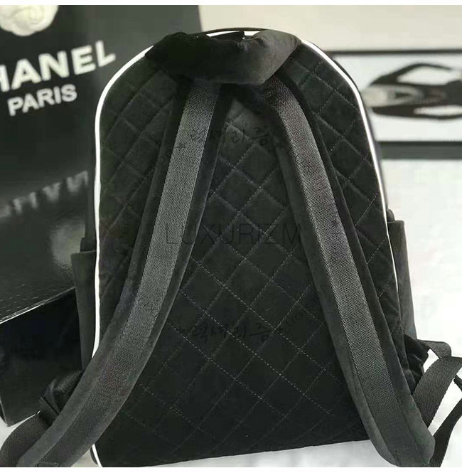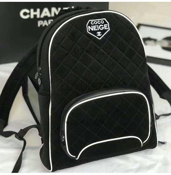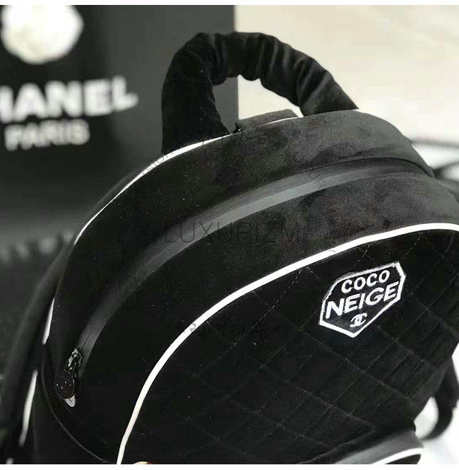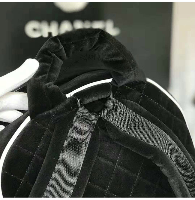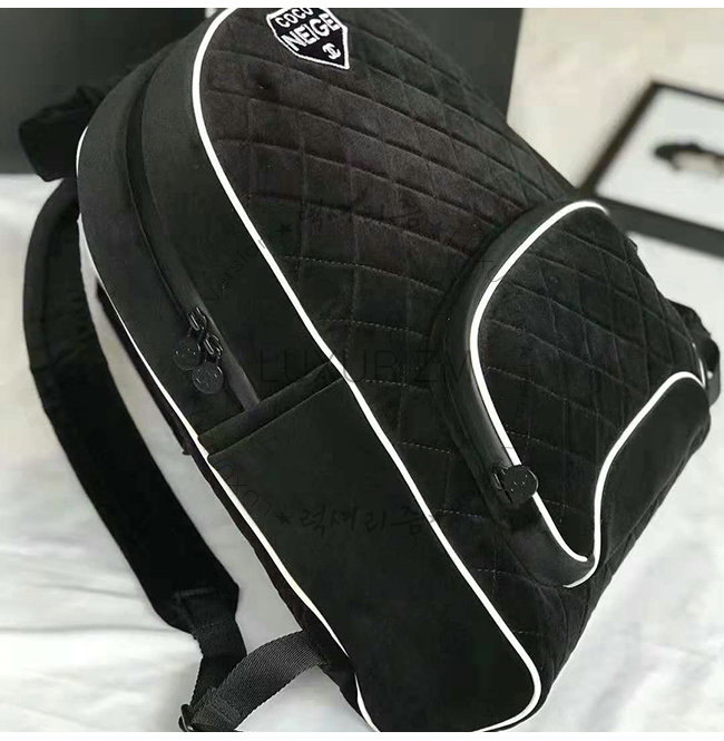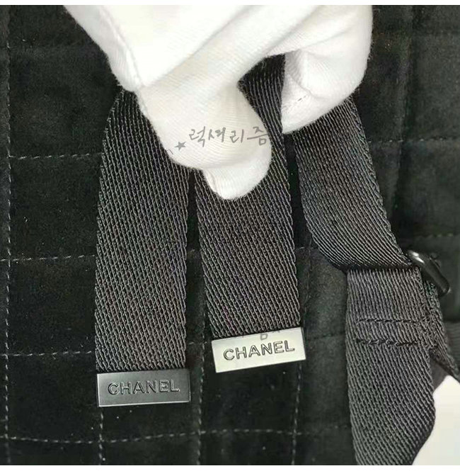 [스페셜오더]CHANEL-A57594 샤넬 블랙 벨벳 로고 패치 실버메탈 백팩