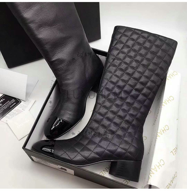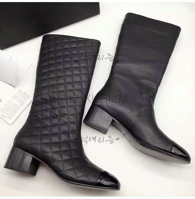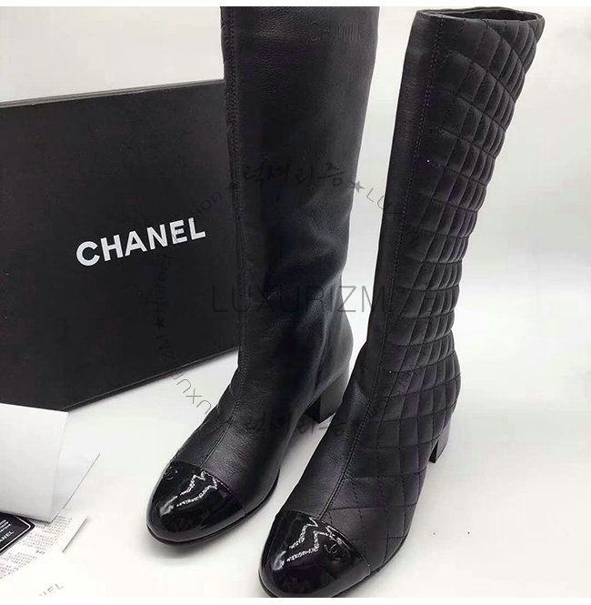CHANEL-G33511 샤넬 블랙 램스킨 페이턴트 카프스킨 하이 부츠