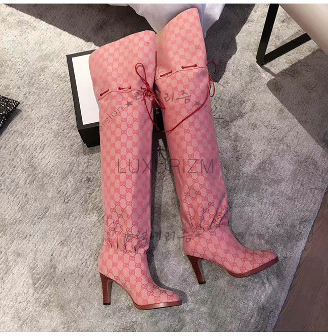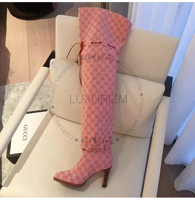 GUCCI-523513 9770 구찌 베이지 GG 캔버스 over-the-knee 부츠