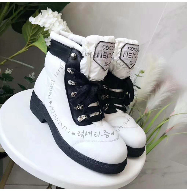 CHANEL-G34082 샤넬 화이트 나일론 페브릭 쇼트 부츠