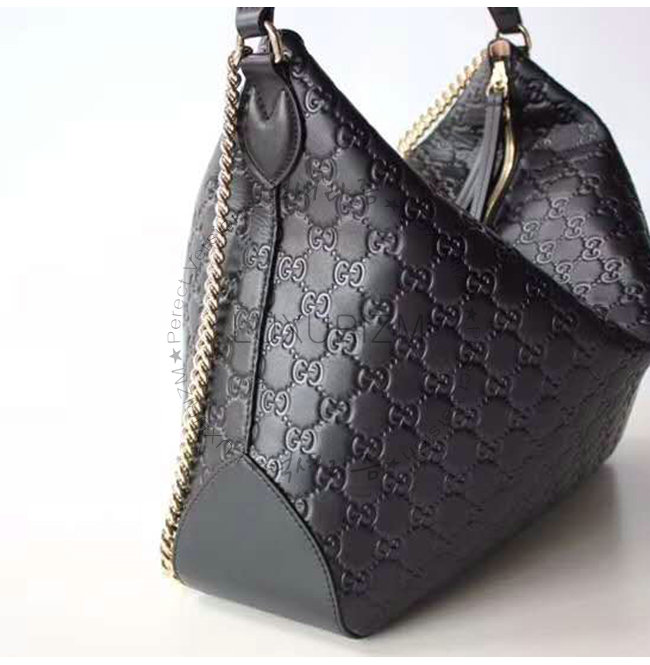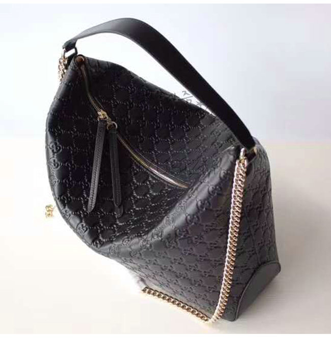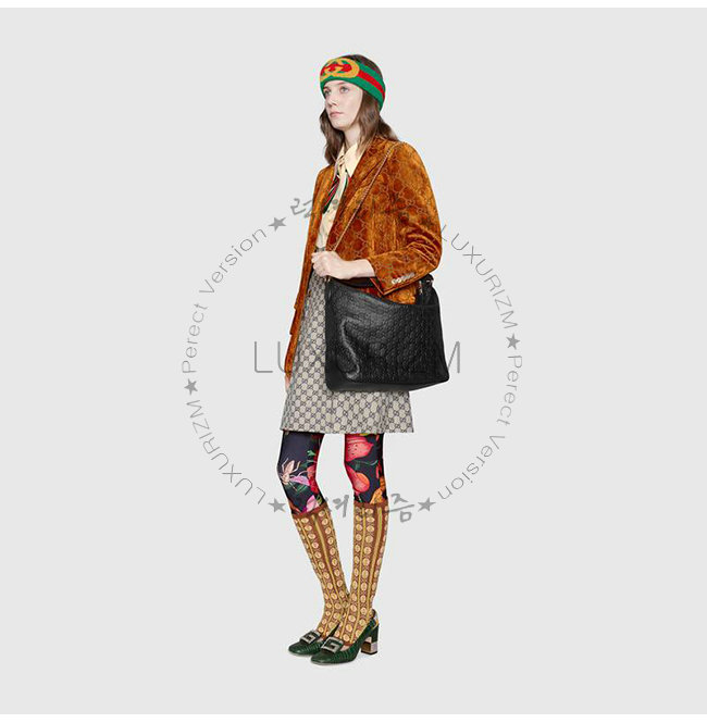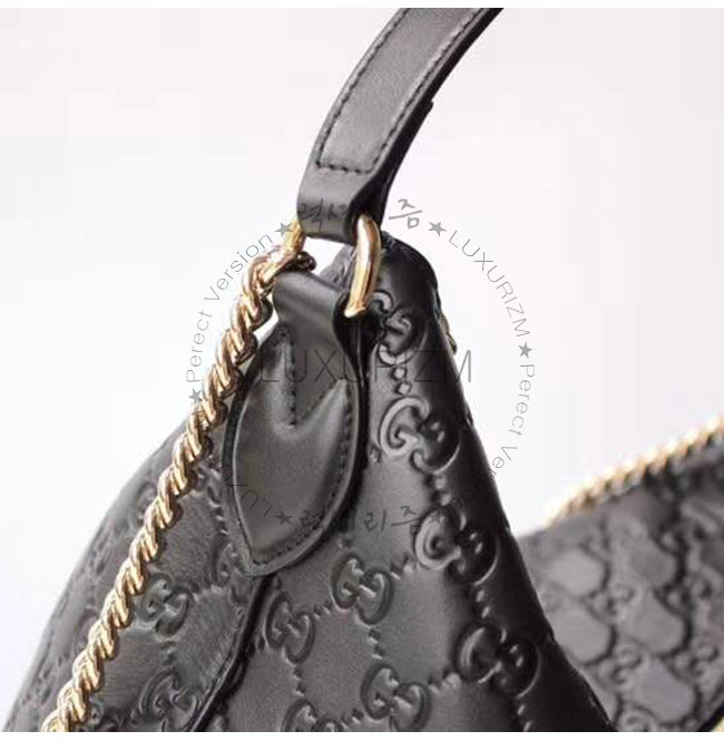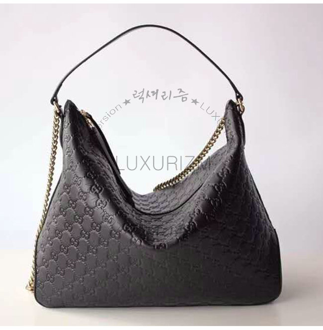 [스페셜오더]GUCCI-477324 1000 구찌 블랙 Gucci 시그니처 가죽 라지 호보백