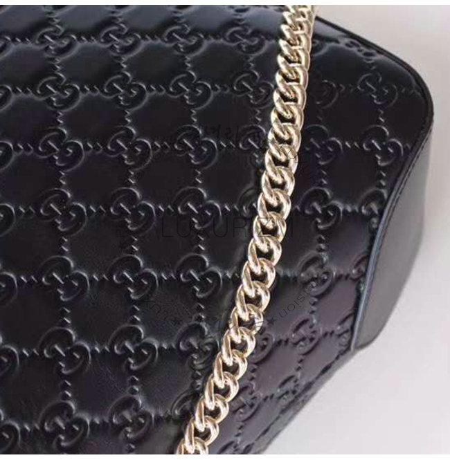 블랙 구찌 시그니처 부드러운 가죽 반짝이는 골드 톤의 하드웨어 내부