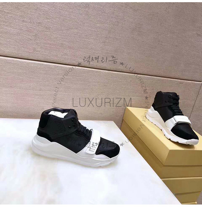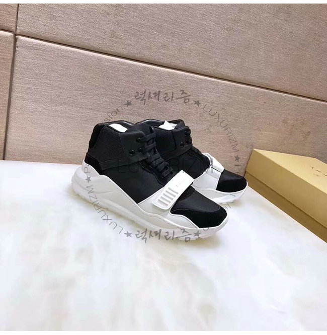 BURBERRY-40785601 버버리 블랙 화이트 스웨이드 네오프렌 하이톱 스니커즈
