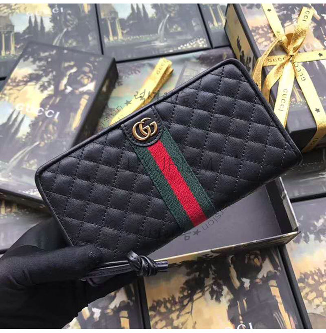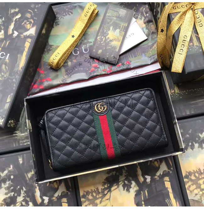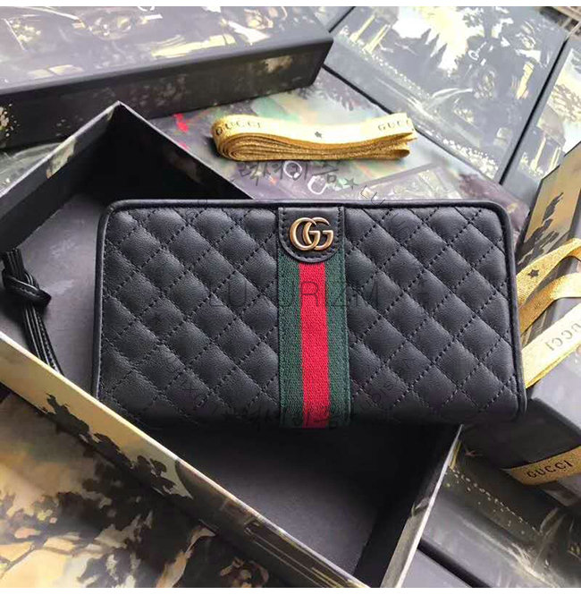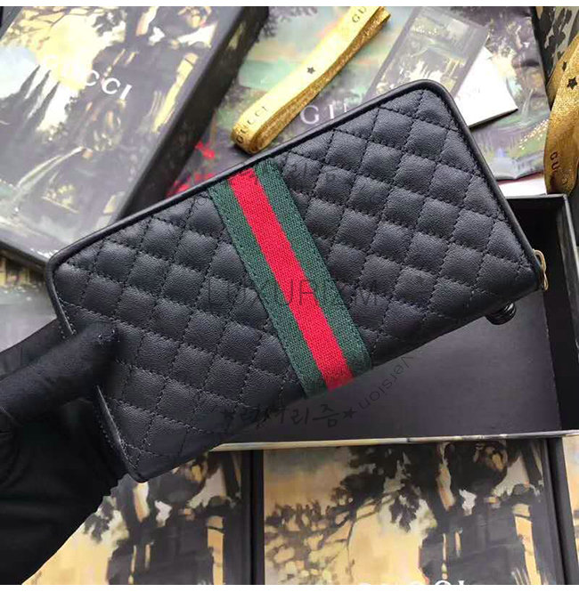 [스페셜오더]GUCCI-536450 1060 구찌 블랙 퀼트 가죽 더블 G 장식 지퍼 지갑