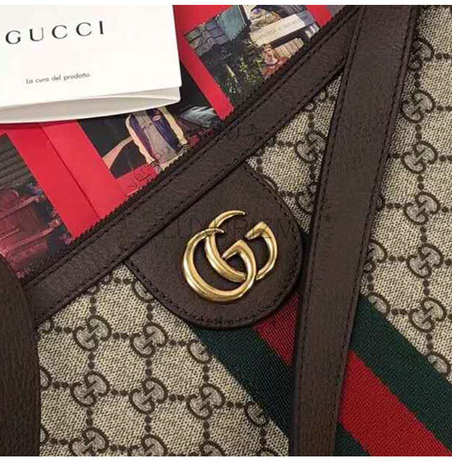 및 브라운 가죽 트리밍 그린/레드 웹(Web) 디테일 앤틱 골드 톤 하드웨어 더블 G