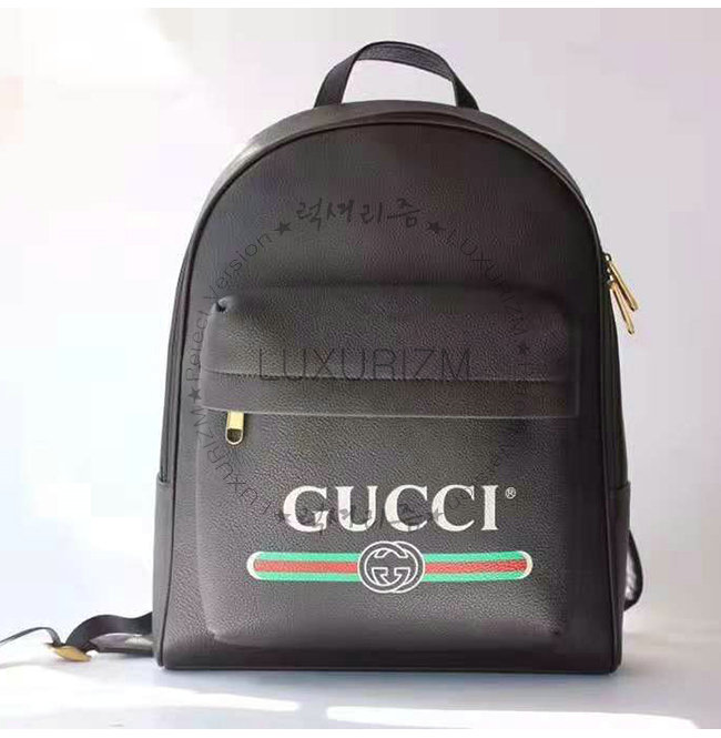 [스페셜오더]GUCCI-547843 8163 구찌 블랙 가죽 GUCCI 프린트 백팩
