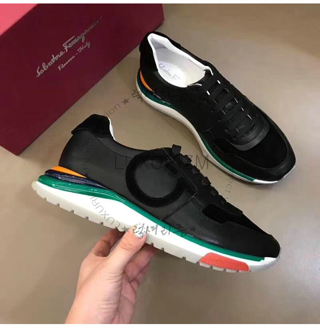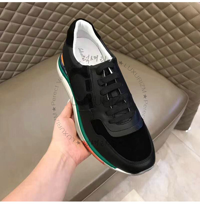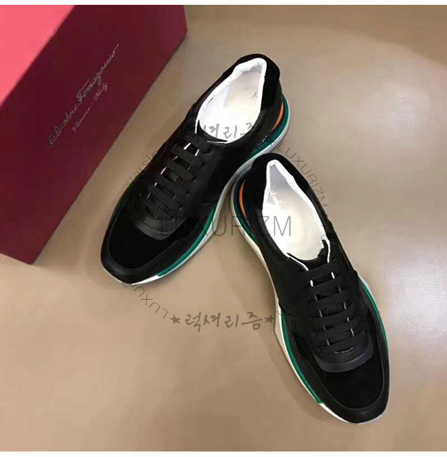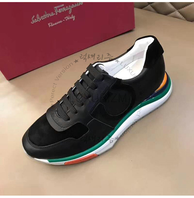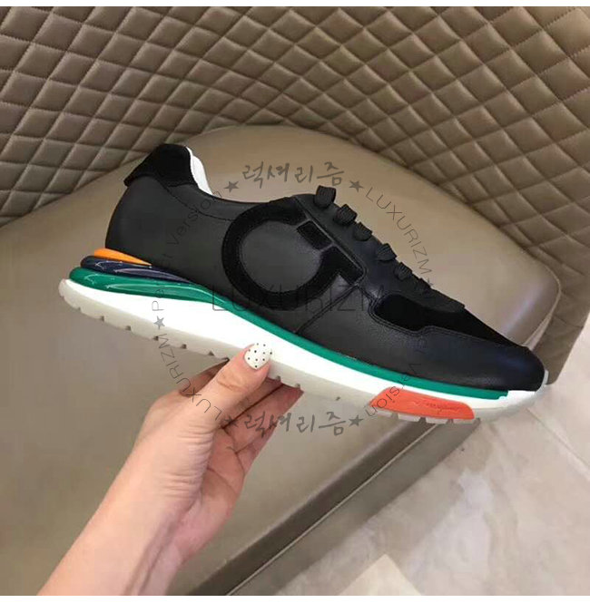 [스페셜오더]FERRAGAMO-02B225 페라가모 블랙 카프스킨 레인보우 스니커즈