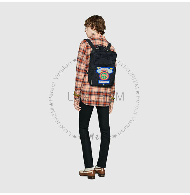 [스페셜오더]GUCCI-536724 8564 구찌 블랙 나일론 1980년대 구찌 패치 장식 미디엄 백팩