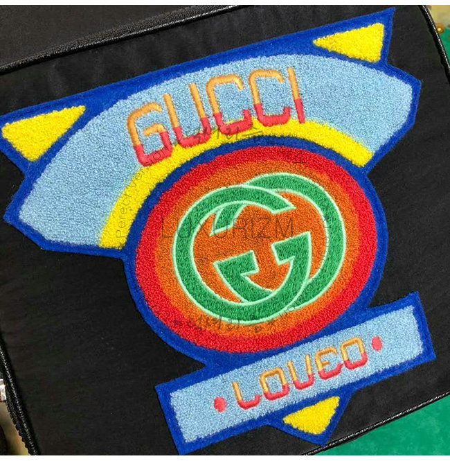 테크백. 블랙 나일론 소재. 1980년대를 연상시키는 레인보우 테리 클로스 구찌 패치가