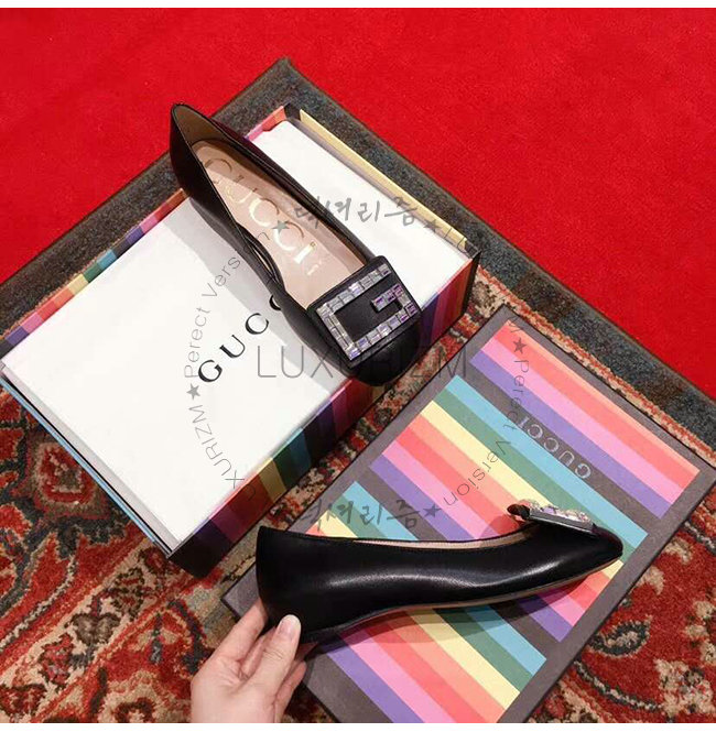 GUCCI-551434 1000 구찌 마들린 블랙 가죽 크리스털 G 디테일 발레 플랫