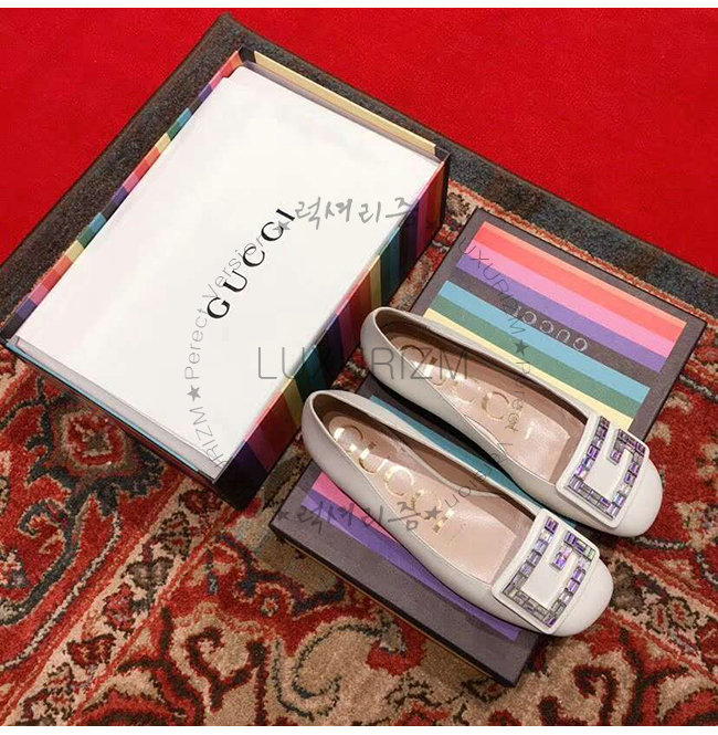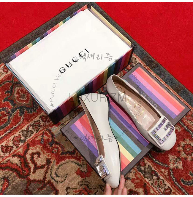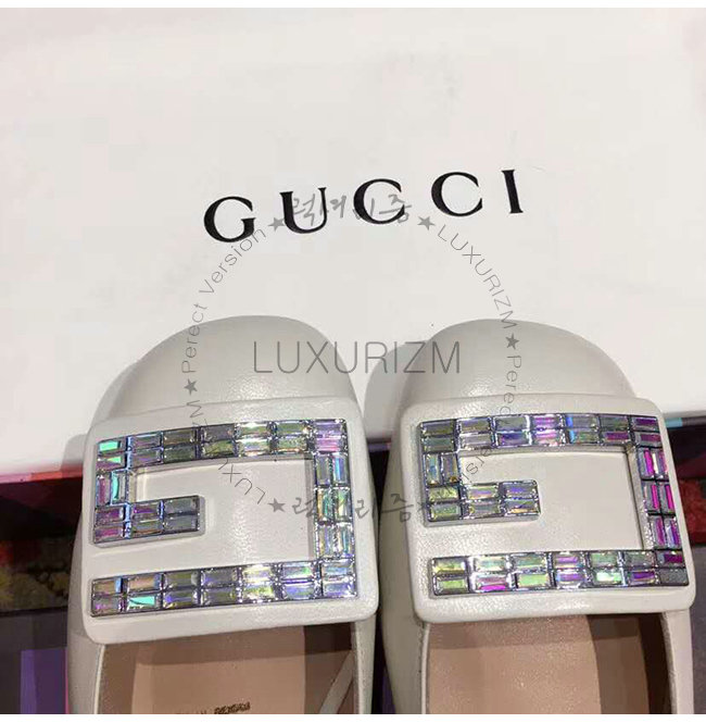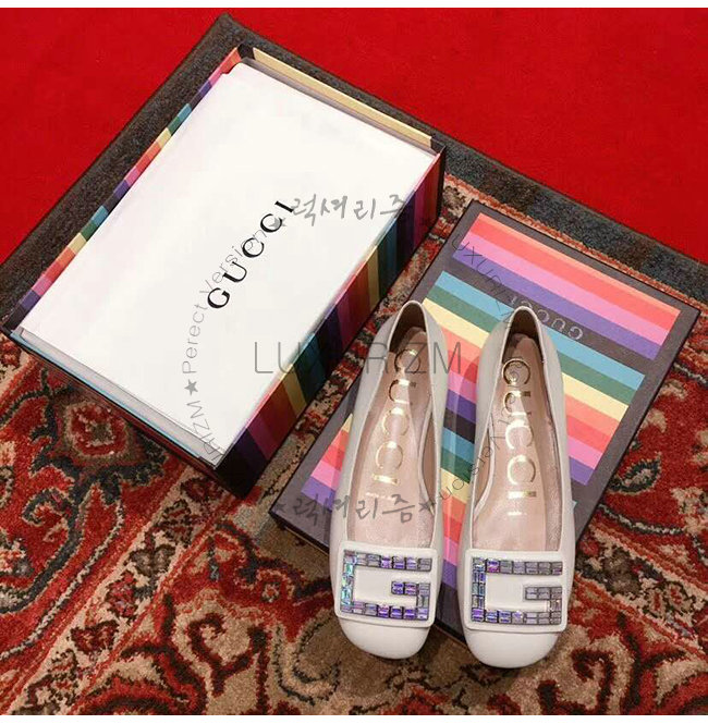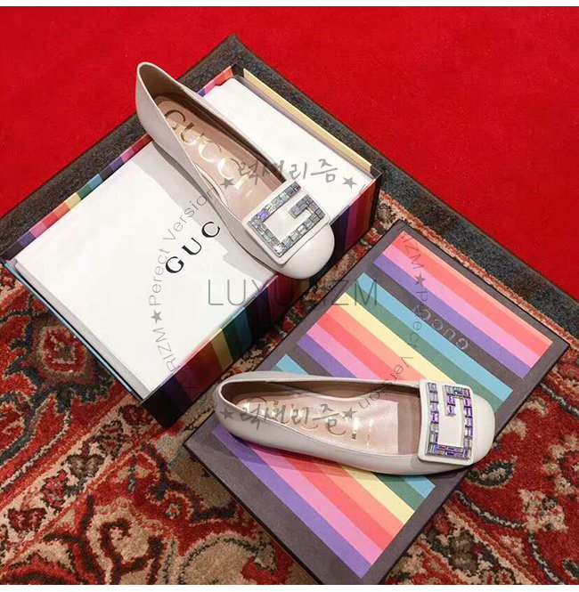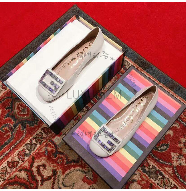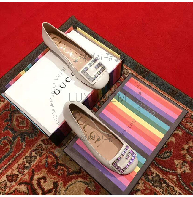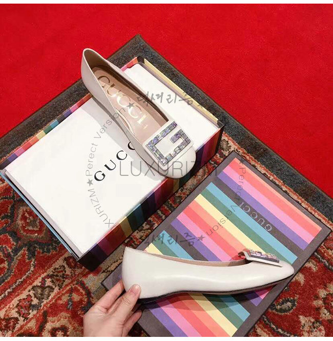 GUCCI-551434 9526 구찌 마들린 화이트 가죽 크리스털 G 디테일 발레 플랫