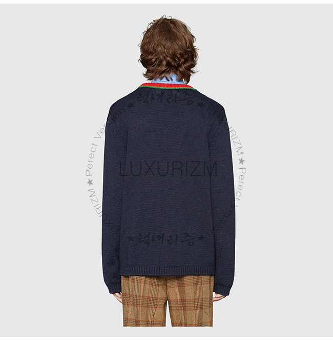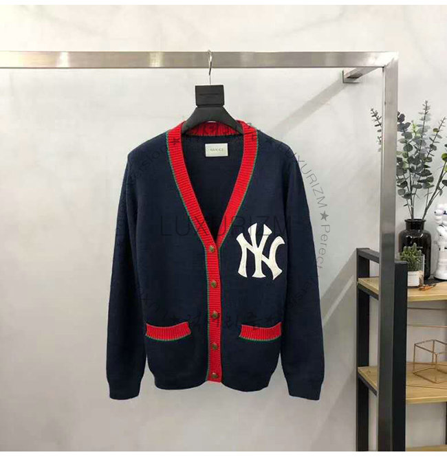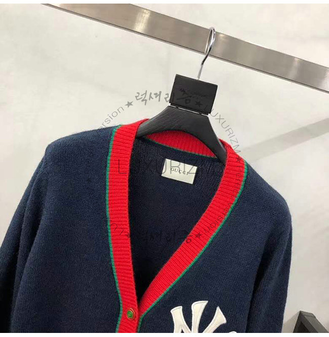 GUCCI-543530 4045 구찌 네이비 을 뉴욕 양키스 패치 장식 가디건