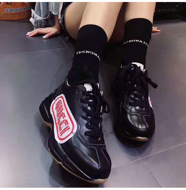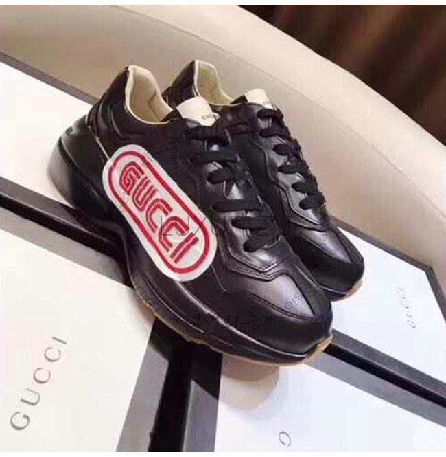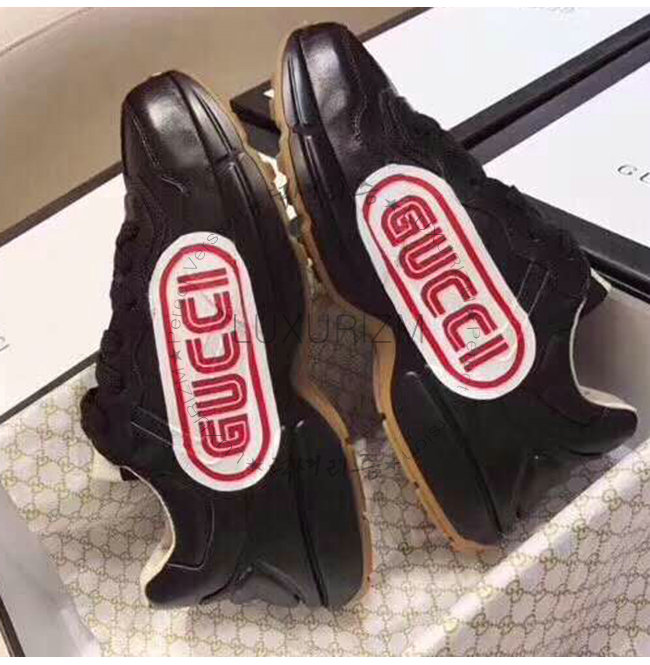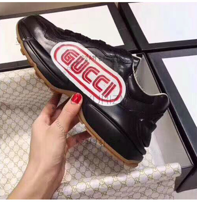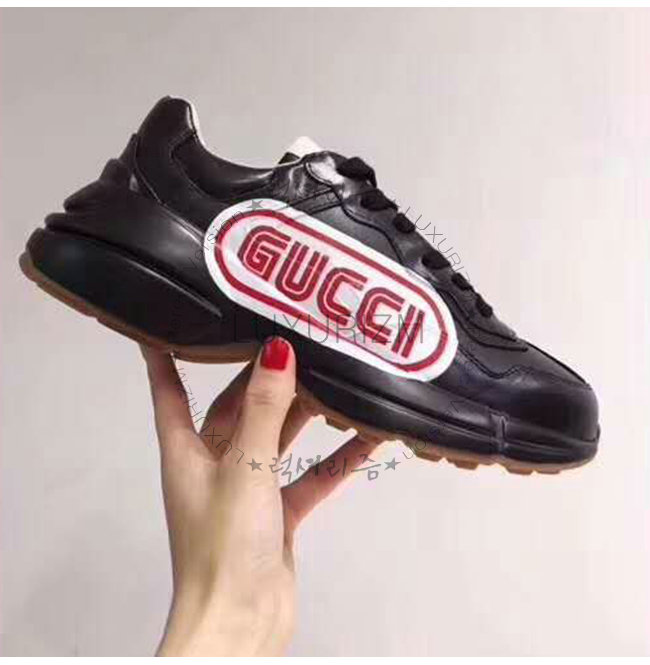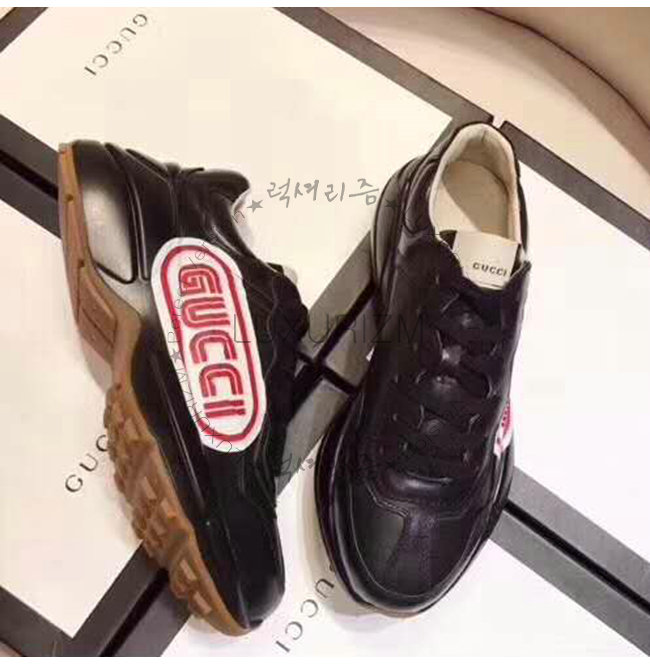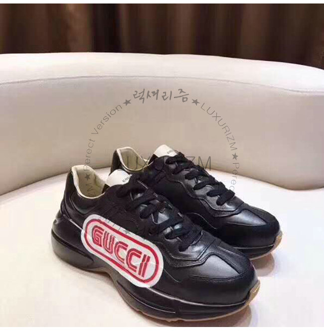 GUCCI-523609 1000 구찌 롸이톤 블랙 가죽 구찌 프린트 스니커즈(남여공용)