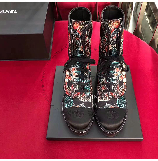 [스페셜오더]CHANEL-G33185 샤넬 프린티드 트위드 그로그랭 쇼트 부츠