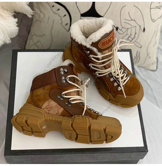 [스페셜오더]GUCCI-550034 2565 구찌 플래시트렉 브라운 가죽 울 GG 하이탑 스니커즈