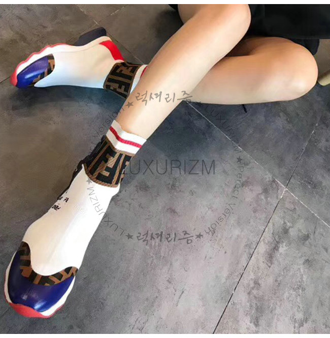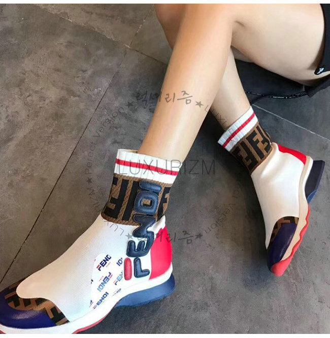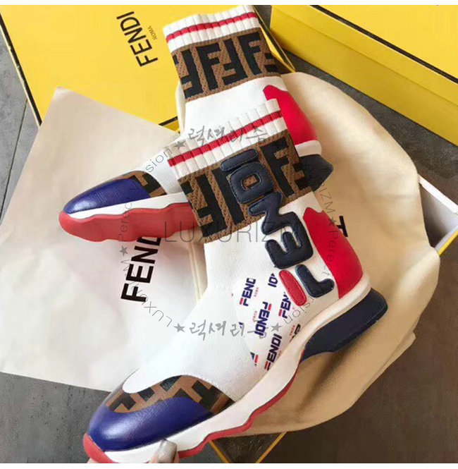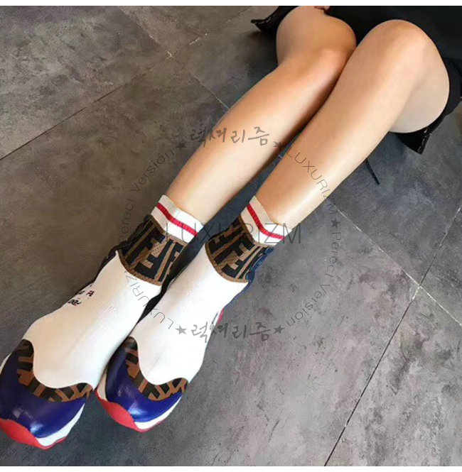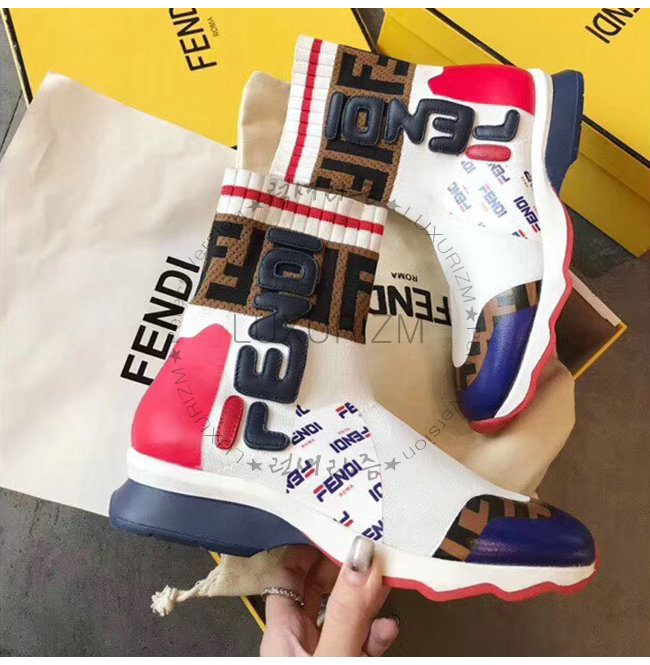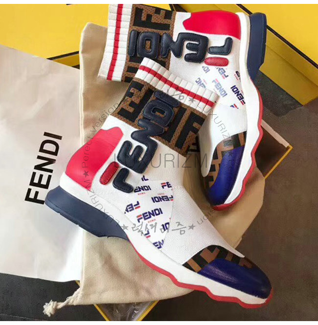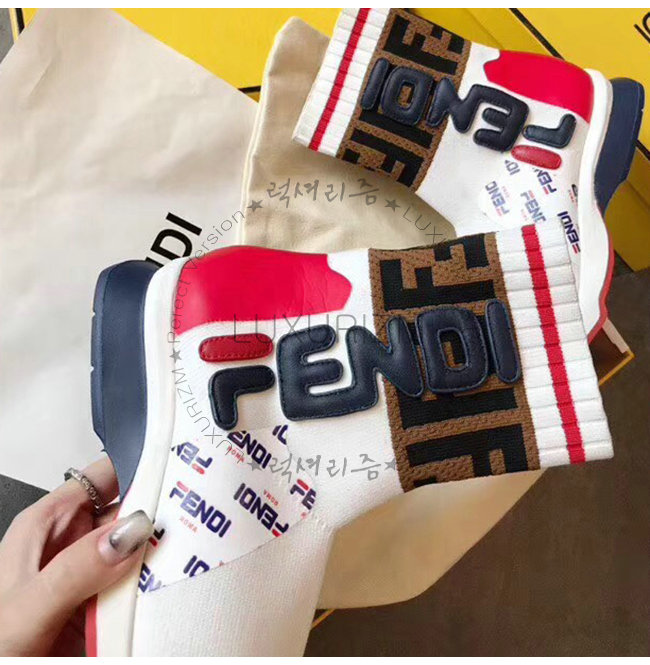 FENDI-8T6830 펜디 화이트 스트레치 니트 Fendi Mania 아플리케 스니커즈 부츠