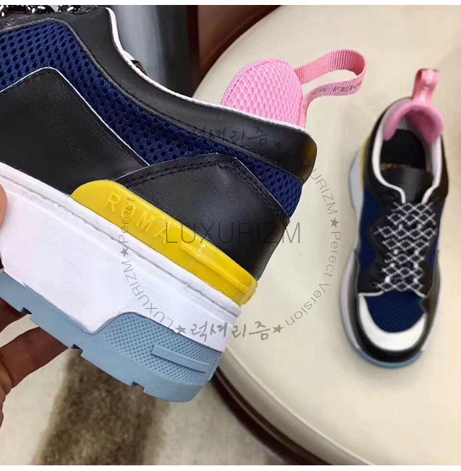송아지 가죽 소재. 테크니컬 메시 인서트 장식. 스쿠버 패브릭 텅. 패드 쿠션 힐.