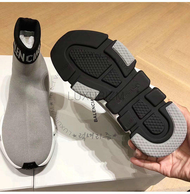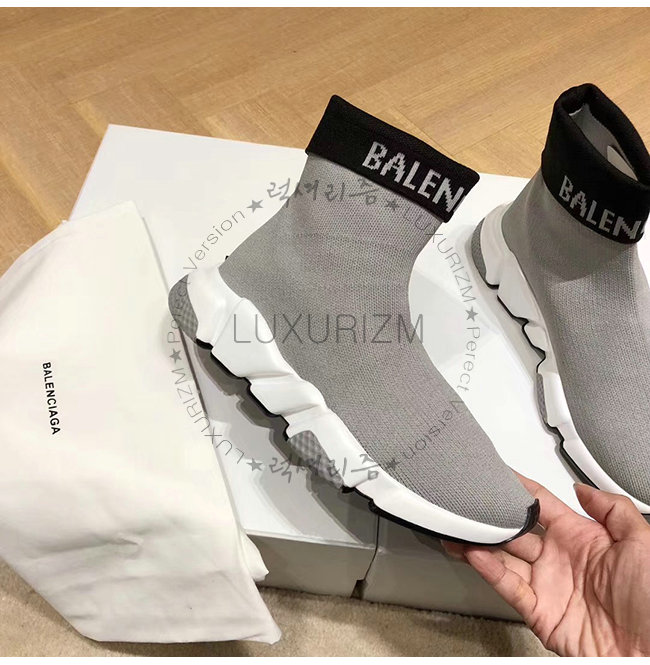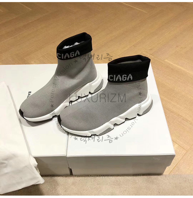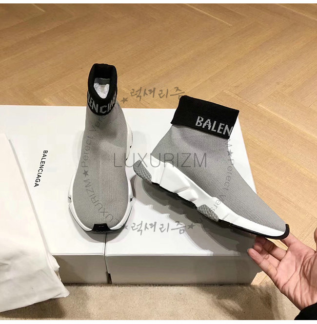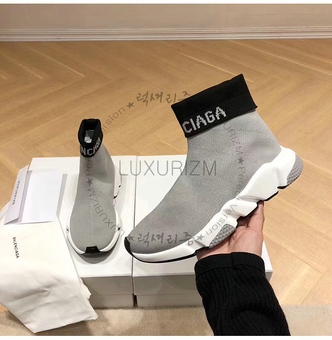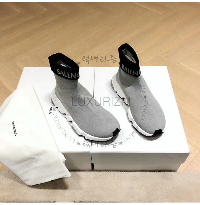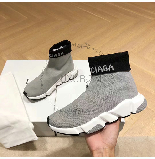 BALENCIAGA-525725 발렌시아가 그레이 니트 로고 장식 스피드 트레이너(남여공용)