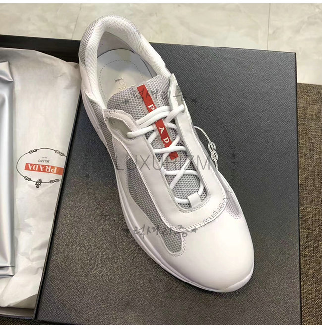 PRADA-4E3337 프라다 화이트 송아지 가죽 기능성 패브릭 스니커즈