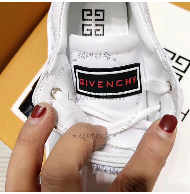 솔리드, 검정색과 흰색의 고무 패치, 끈에 빨간색 GIVENCHY 시그니처, 흰색 고무