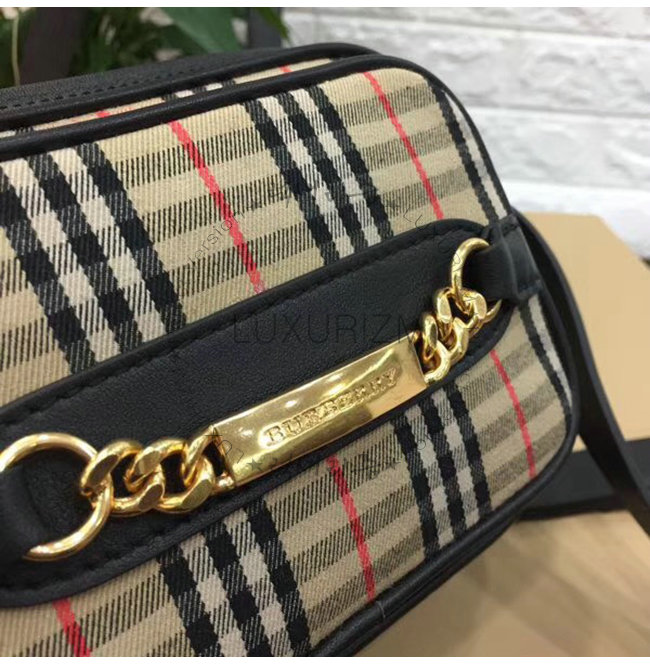 [스페셜오더]BURBERRY-40799031 버버리 블랙 송아지 가죽 1983 체크 링크 카메라백