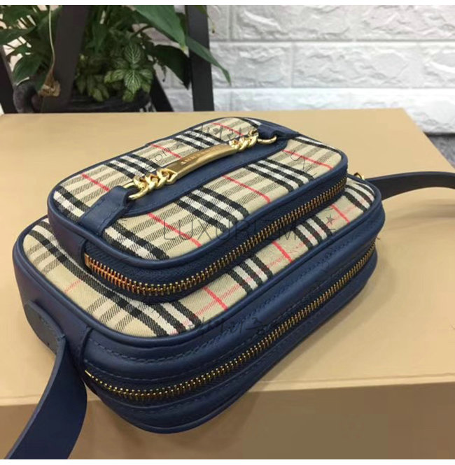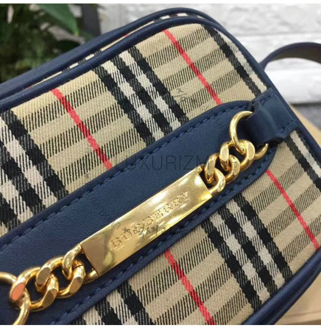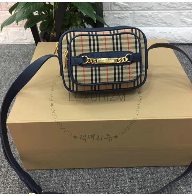 [스페셜오더]BURBERRY-40799031 버버리 네이비 송아지 가죽 1983 체크 링크 카메라백