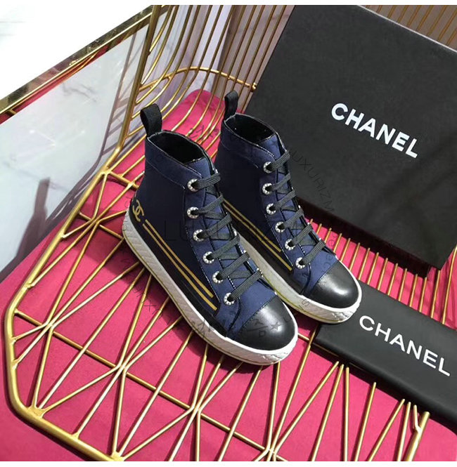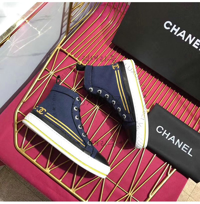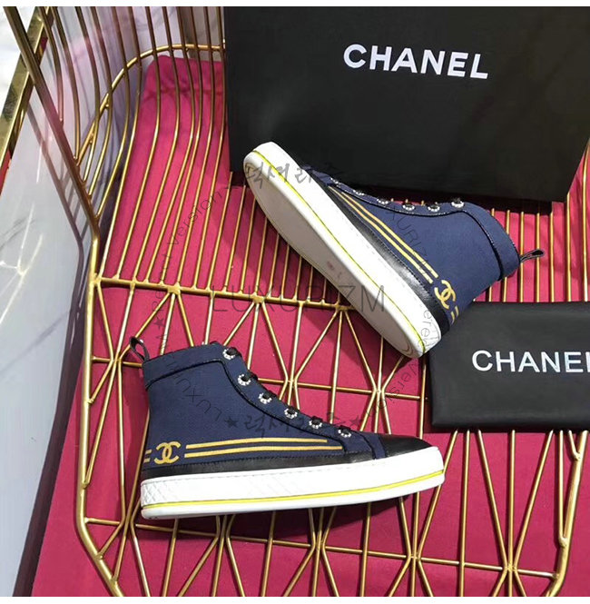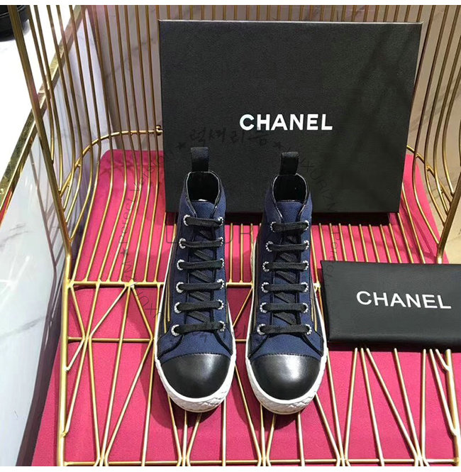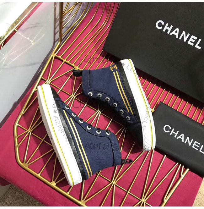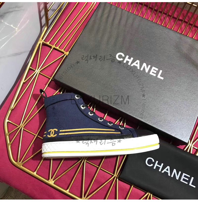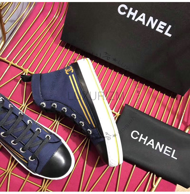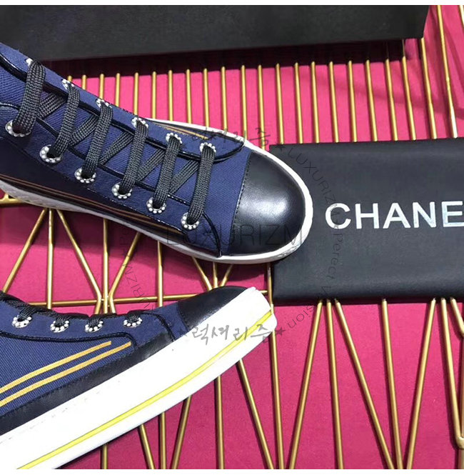 CHANEL-G34222 샤넬 네이비 페브릭 하이탑 스니커즈
